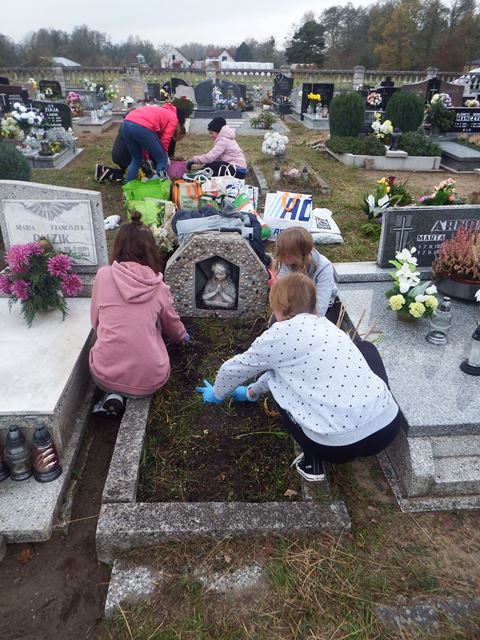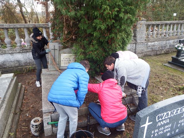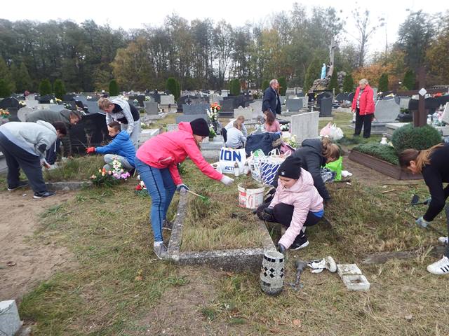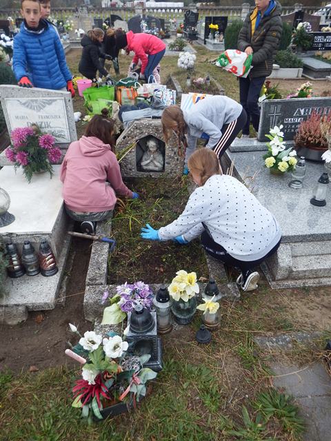 Sprzątanie grobów - akcja Samorządu Uczniowskiego - październik 2019 r.
