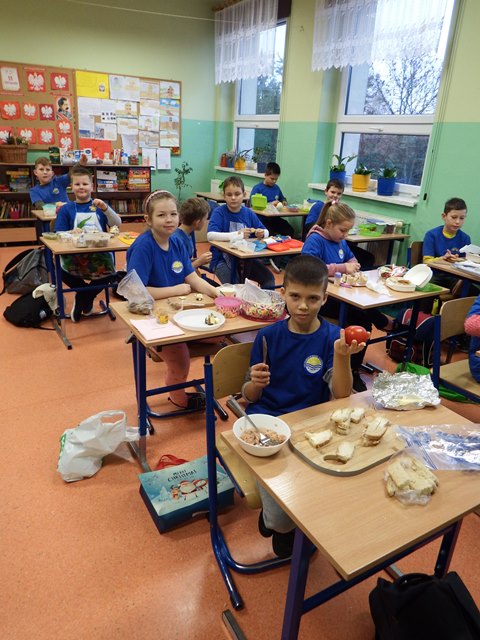 Akcję "Śniadanie Daje Moc" przeprowadzono w klasach I-III pod kierunkiem pani Anny Reich, Iwony Pietruszki oraz Mieczysławy Perwejnis.