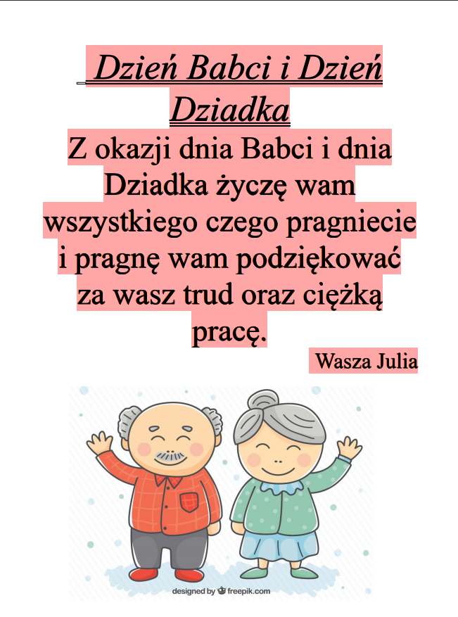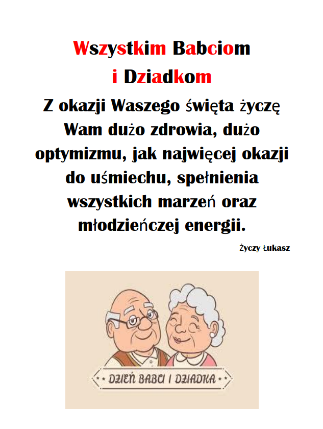 Kartka z okazji Dnia Babci i Dnia Dziadka