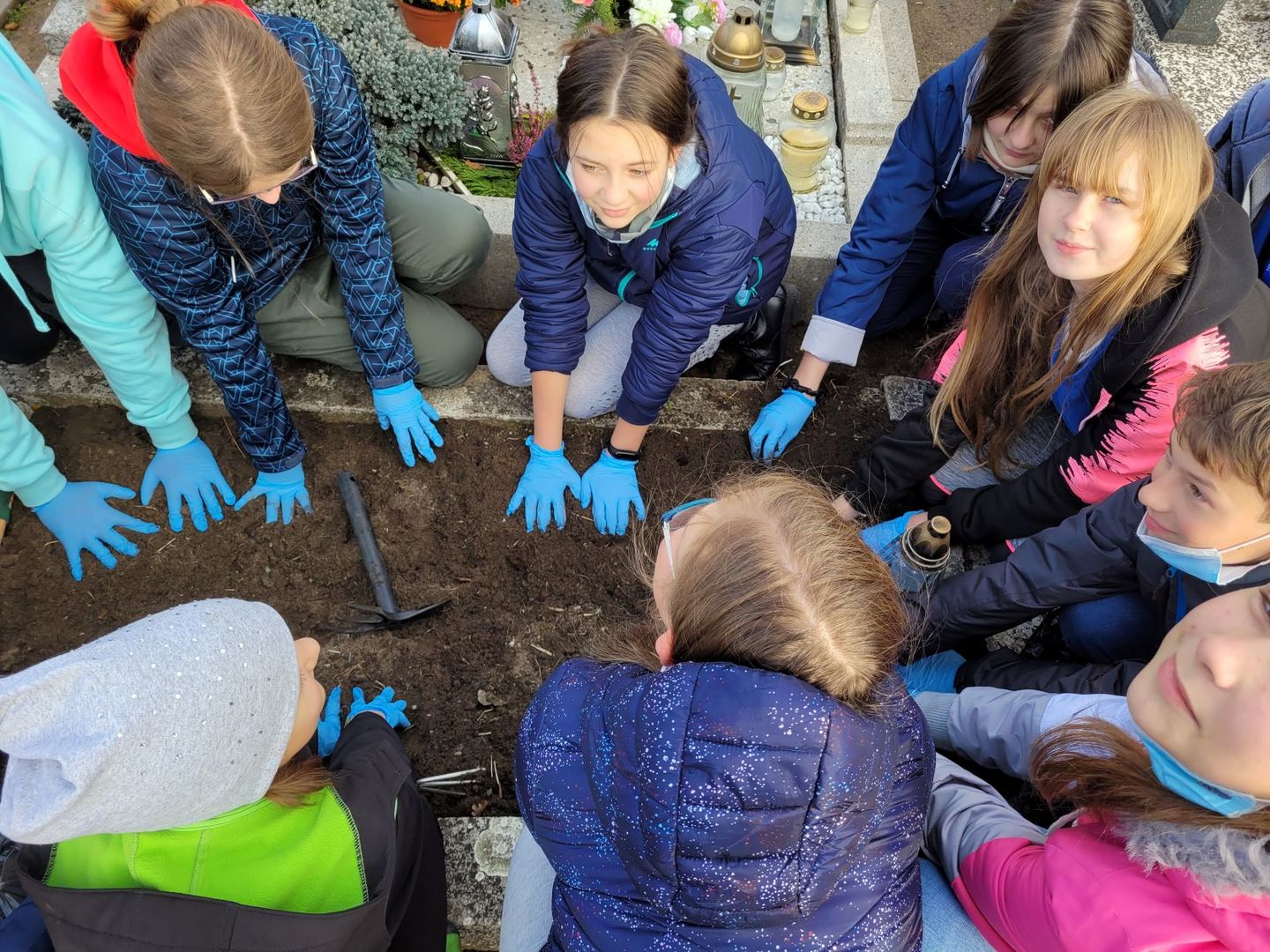 Klasa siódma postanowiła uporządkować grób byłego kierownika szkoły, Pana Grzegorza Decko. Uczniowie wyrazili chęć opiekowania się owym grobem nie tylko z okazji święta, ale także na co dzień.