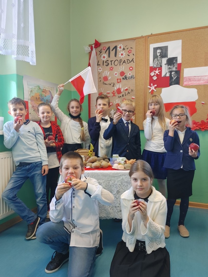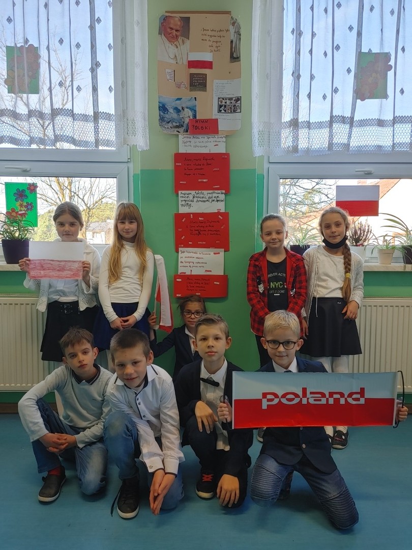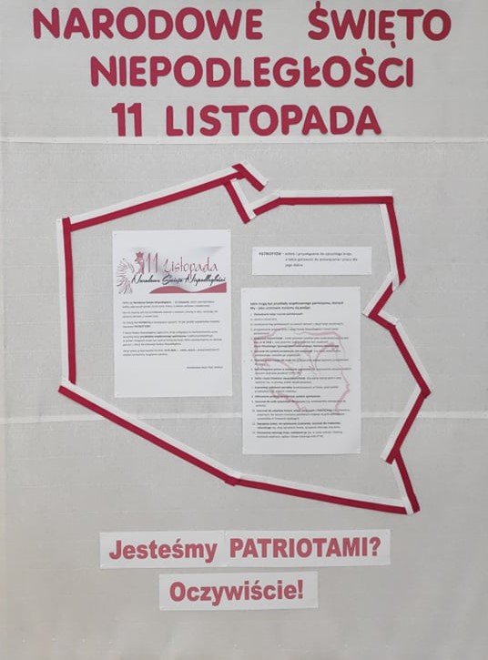 W każdej klasie pojawiły się piękne gazetki, których tematem było odzyskanie niepodległości przez Polskę. Nie zabrakło symboli narodowych: polskiej flagi, godła, wizerunków bohaterów owych doniosłych wydarzeń.