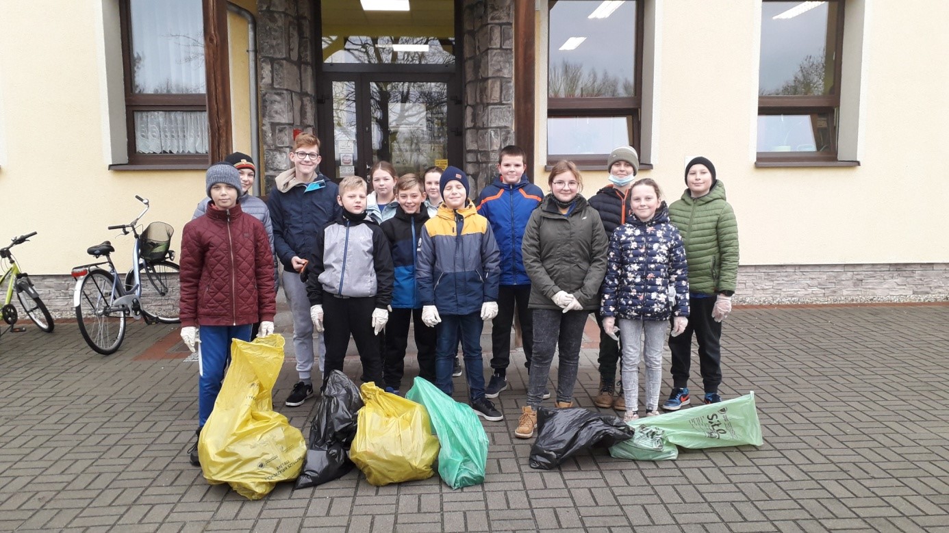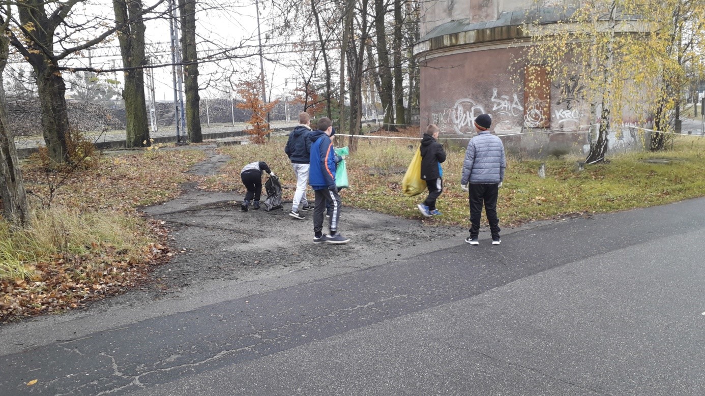 Piątoklasiści posprzątali teren wokół szkoły. Segregacja śmieci, troska o czystość środowiska, szacunek dla natury to także ważne aspekty, które świadczą o miłości do Ojczyzny.