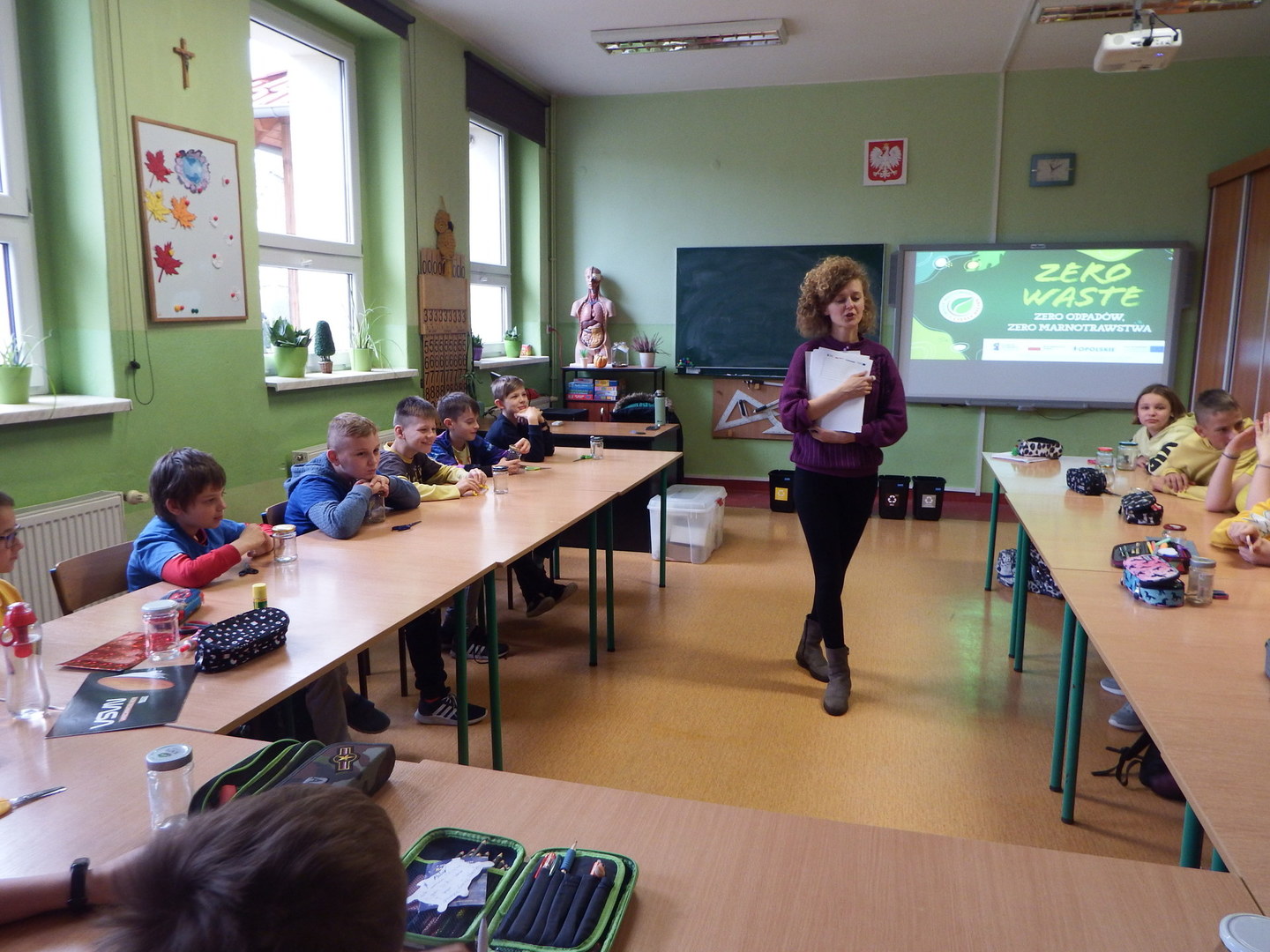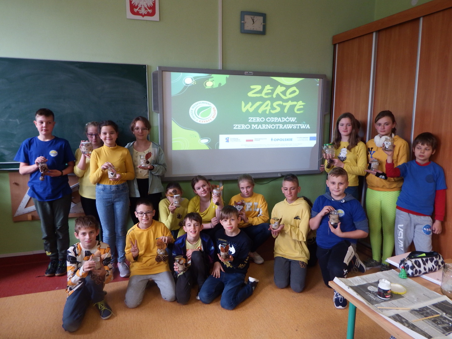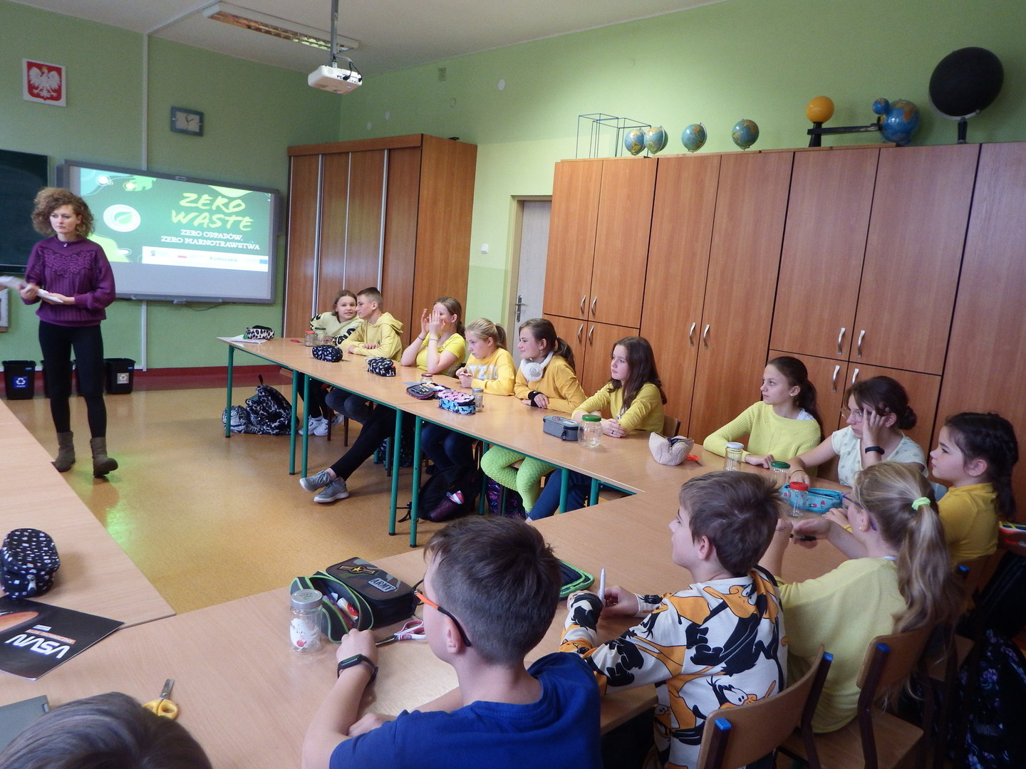 Uczniowie klas IV-VI mieli okazję wziąć udział w warsztatach ekologicznych. Uczniowie dowiedzieli się o idei ZERO WASTE, czyli o idei życia bez odpadów i marnotrawstwa. Dzieci podawały sporo przykładów jak można stosować powyższa ideę w życiu codziennym. W drugiej części warsztatów uczniowie wykonywali torby ekologiczne oraz lampiony.