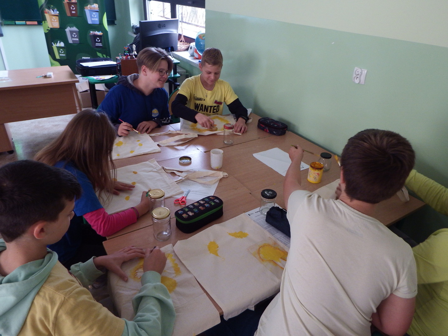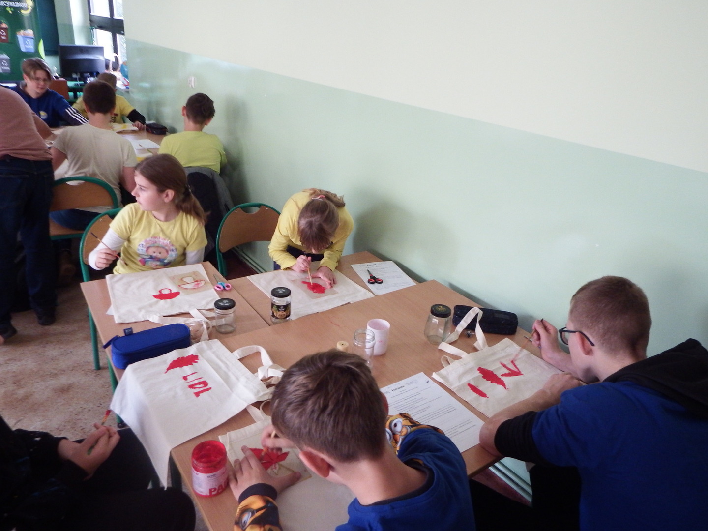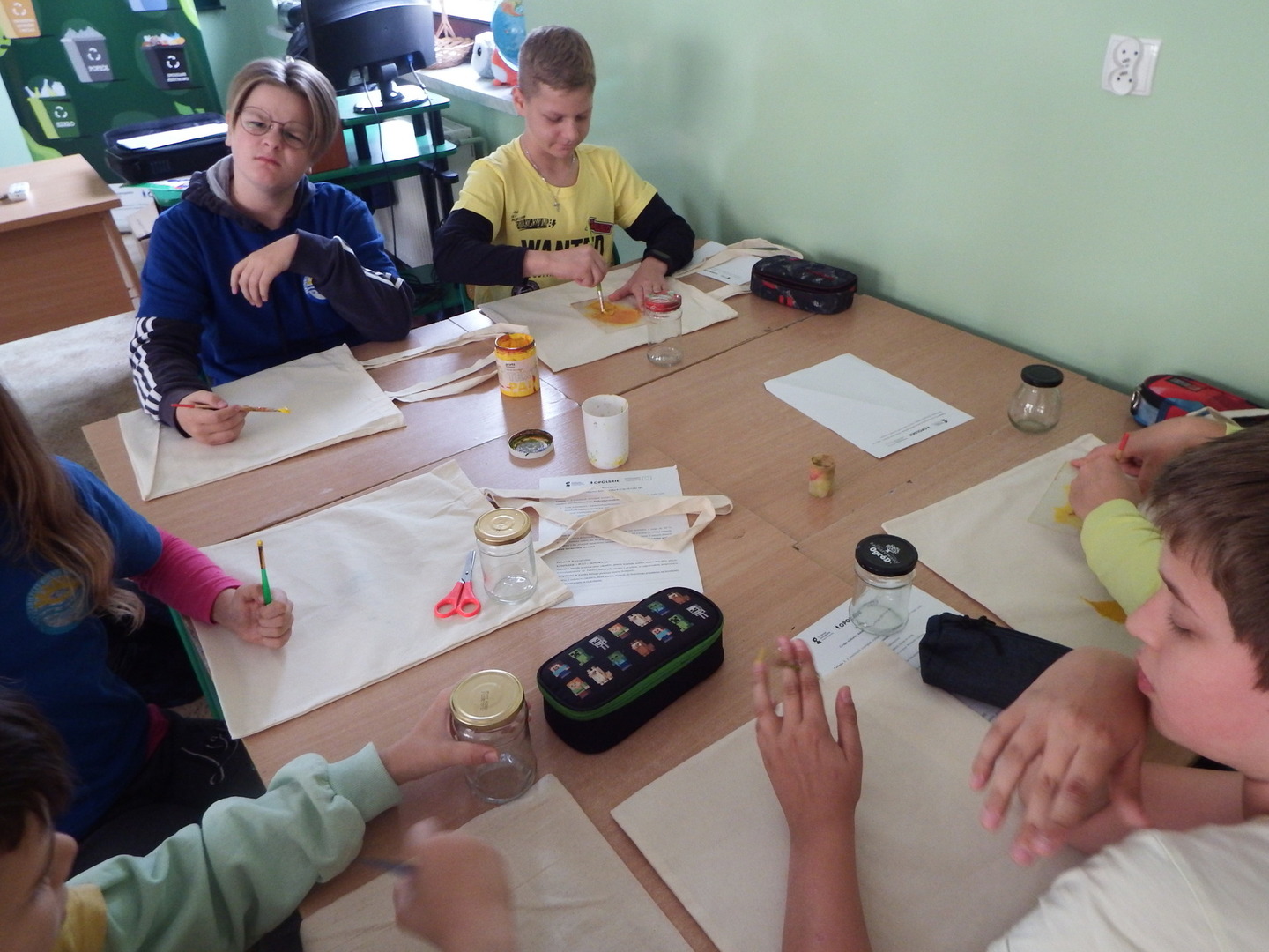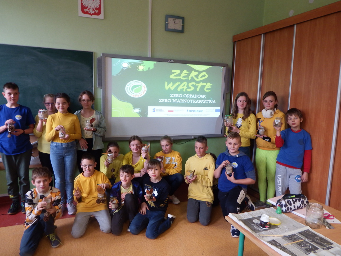 Uczniowie klas IV-VI mieli okazję wziąć udział w warsztatach ekologicznych. Uczniowie dowiedzieli się o idei ZERO WASTE, czyli o idei życia bez odpadów i marnotrawstwa. Dzieci podawały sporo przykładów jak można stosować powyższa ideę w życiu codziennym. W drugiej części warsztatów uczniowie wykonywali torby ekologiczne oraz lampiony.