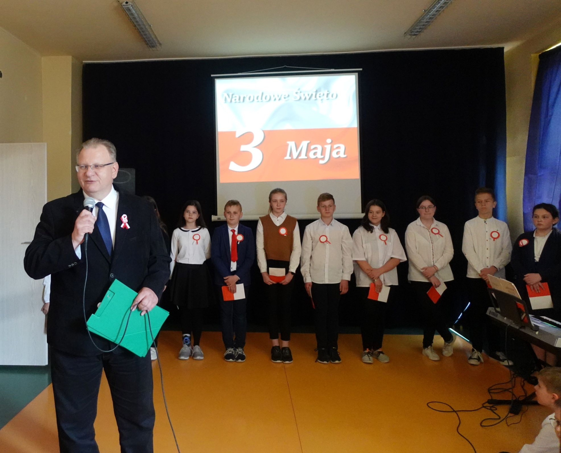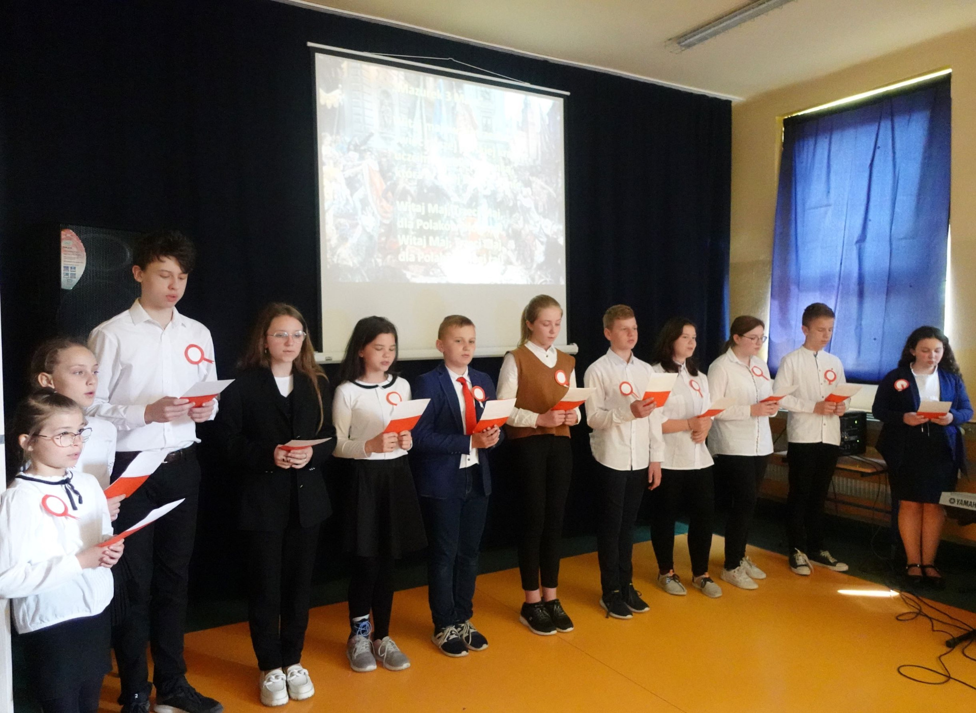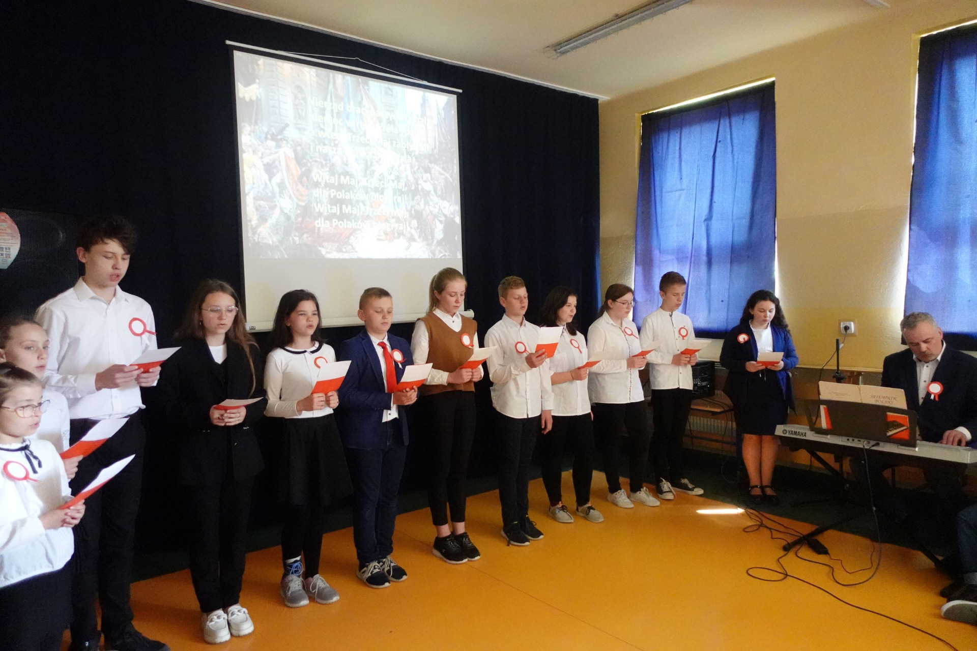 Uroczysty apel z okazji rocznicy uchwalenia Konstytucji 3-go Maja przygotowali: pan Piotr Jendruś oraz pan Mariusz Cierpich.