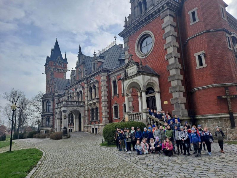 20 kwietnia klasy 1-3 wybrały się na wiosenną wycieczkę. Dzieci zwiedziły przepiękny pałac w Pławniowicach. Poznały sylwetkę hrabiego Franciszka II Ballestrema, który był zleceniodawcą wybudowania zwiedzanego zespołu pałacowo - parkowego. Po wysłuchaniu niezwykle interesującej historii obiektu uczniowie spacerowali po cudownym parku pełnym niezwykłych i unikatowych drzew oraz wspaniałych magnolii. Następnie uczniowie udali się do Funzeum - Muzeum Światła i Koloru w Gliwicach. Tutaj w siedmiu pomieszczeniach odpowiadającym poszczególnym kolorom tęczy dzieci poznały tajemnice światła oraz kolorów. Były bardzo zaskoczone niektórymi informacjami! Najbardziej zadziwił je fakt, że psy widzą tylko barwy szare oraz odcienie niebieskiego i żółtego, zaś kolibry widzą więcej kolorów niż człowiek! Wycieczka obfitowała w niezwykłe wrażenia! Dzieci szczęśliwe i radosne wracały do domów. Anna Rerich