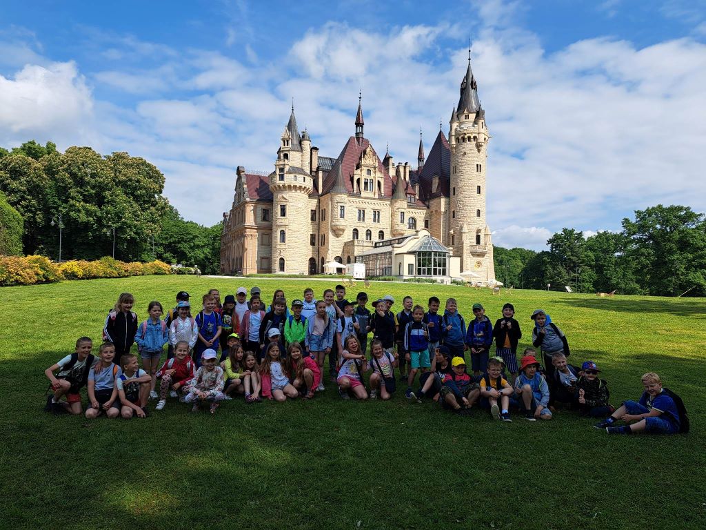 Pierwszego czerwca obchodziliśmy Międzynarodowy Dzień Dziecka. Z tej okazji uczniowie klas 1-3 wybrali się na wycieczkę. Najpierw zwiedzili przepiękny, magiczny zamek w Mosznej, później spacerowali po malowniczych alejach, podziwiając kwitnące azalie i rododendrony. Kolejnym punktem wycieczki była Góra Świętej Anny. Dzieci z wielkim zainteresowaniem słuchały ciekawostek dotyczących owych terenów. Najbardziej zaś zaskoczyła je wiadomość, iż Góra Świętej Anny to wygasły wulkan! Uczniowie podziwiali też piękną bazylikę pod wezwaniem św. Anny, a także z ogromną ciekawością wysłuchali historii życia patronki matek i rodzin. Dzieci wracały do domu bardzo podekscytowane i bogatsze o wiele nowych wiadomości. Anna Rerich