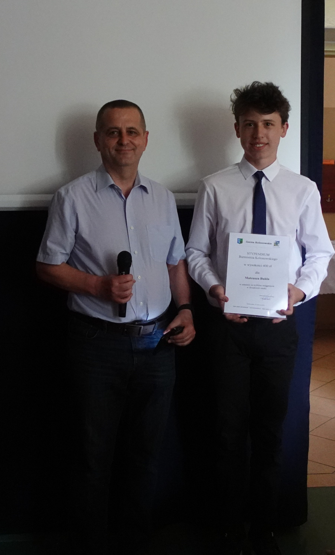 Nagroda Burmistrza Kolonowskiego dla ucznia Mateusza Buhl.