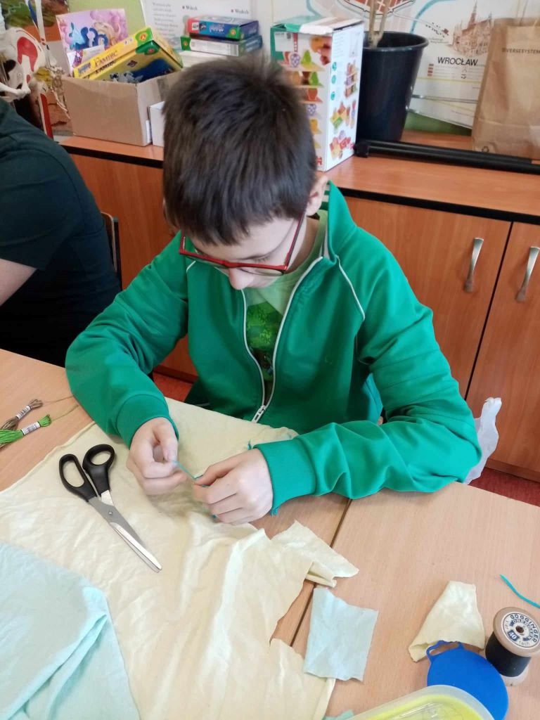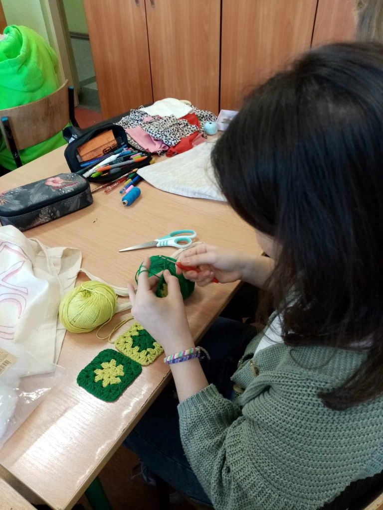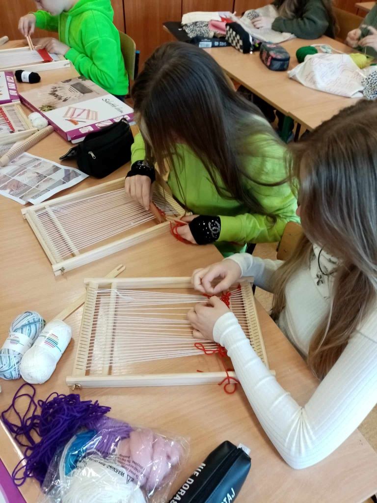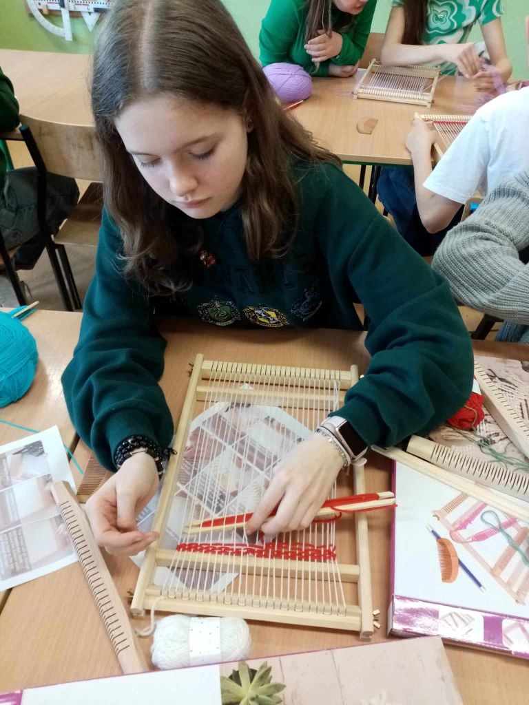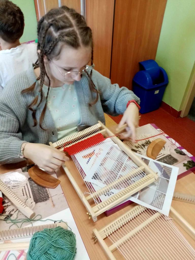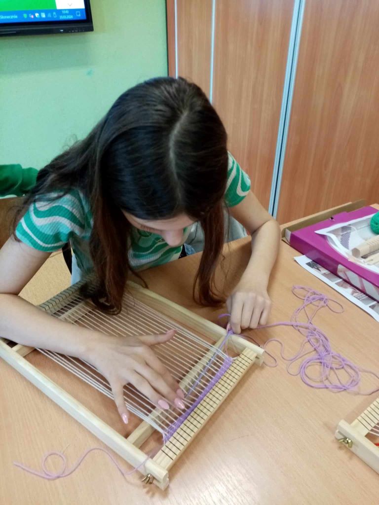 Na jednej z marcowych lekcji techniki uczniowie klasy 6 korzystali z zestawów kreatywnych - krosen, które otrzymaliśmy w ramach programu Laboratorium Przyszłości. Ćwicząc sprawność manualną uczniowie tworzyli dywaniki lub podkładki pod kubki, co im wyobraźnia podpowiadała. Zafascynowani swoimi efektami uczniowie postanowili kontynuować prace na krośnie na następnej lekcji. Cześć uczniów oprócz pracy na krośnie także szyła lub szydełkowała. Izabela Eichhorn