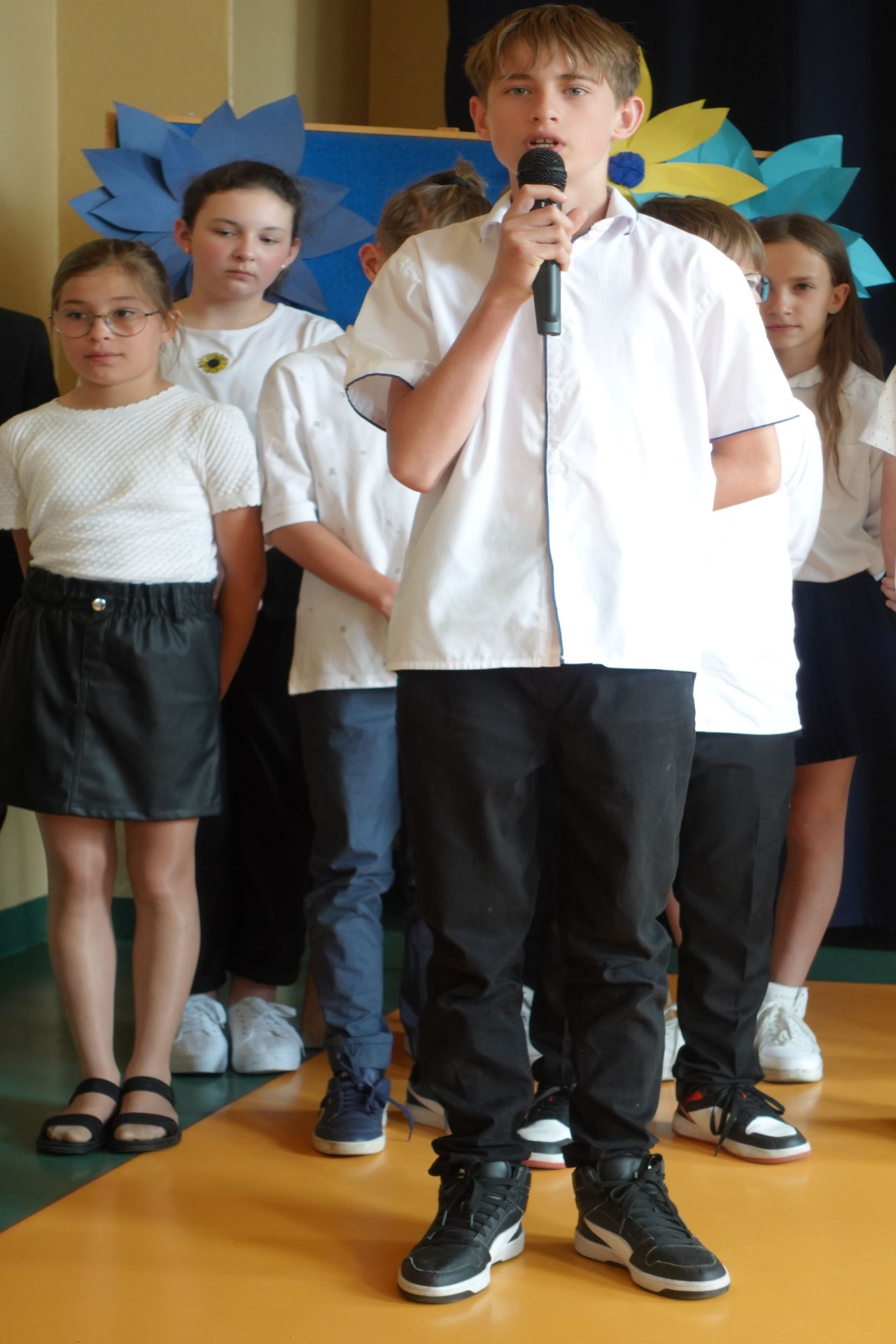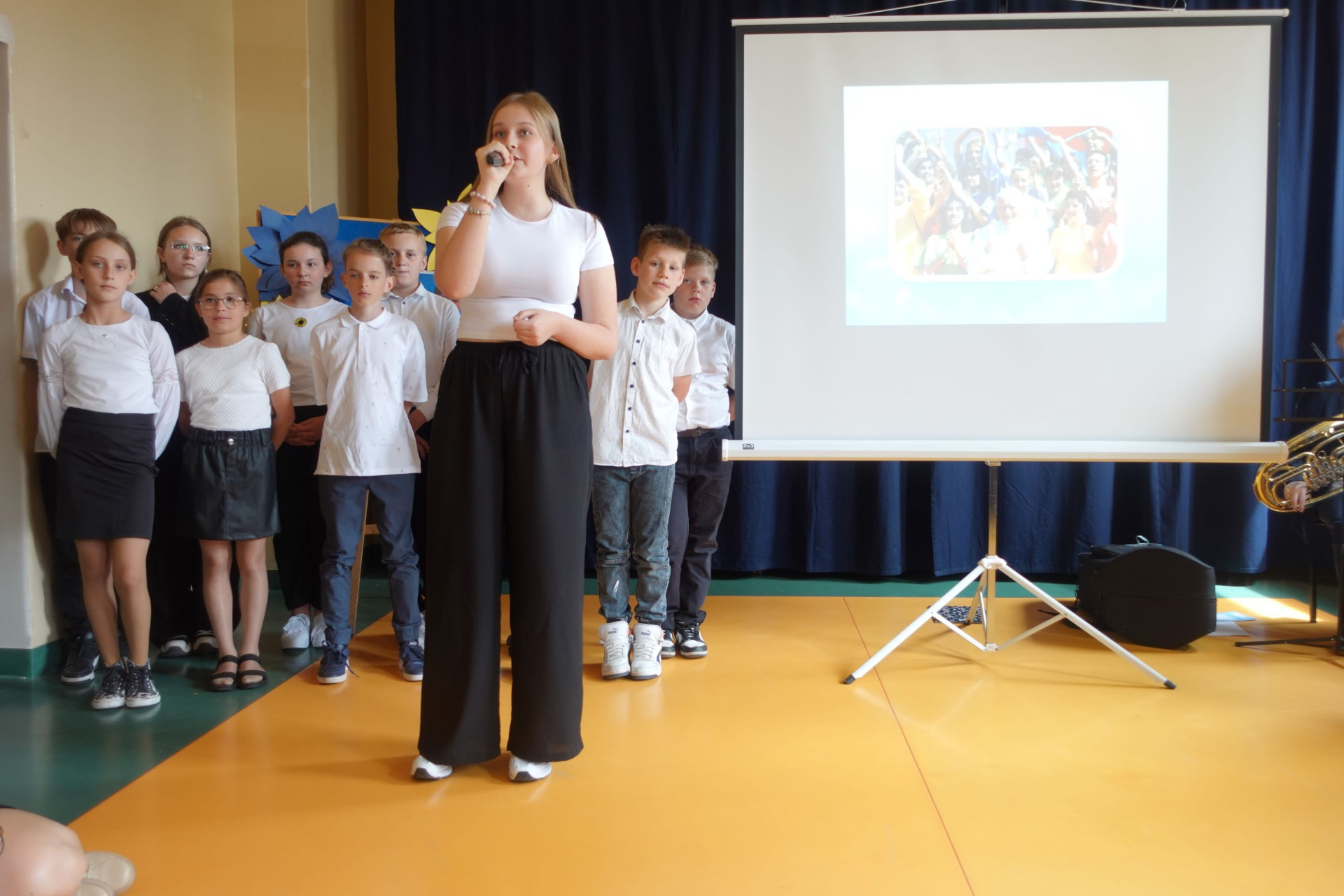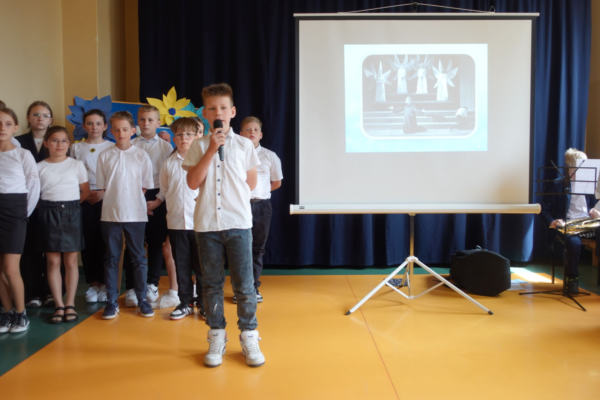 Młodzi artyści działający w Kółku Teatralnym „Fraszka” oraz Chór Młodszy uczniów z III klasy przygotowali piękny koncert okolicznościowy