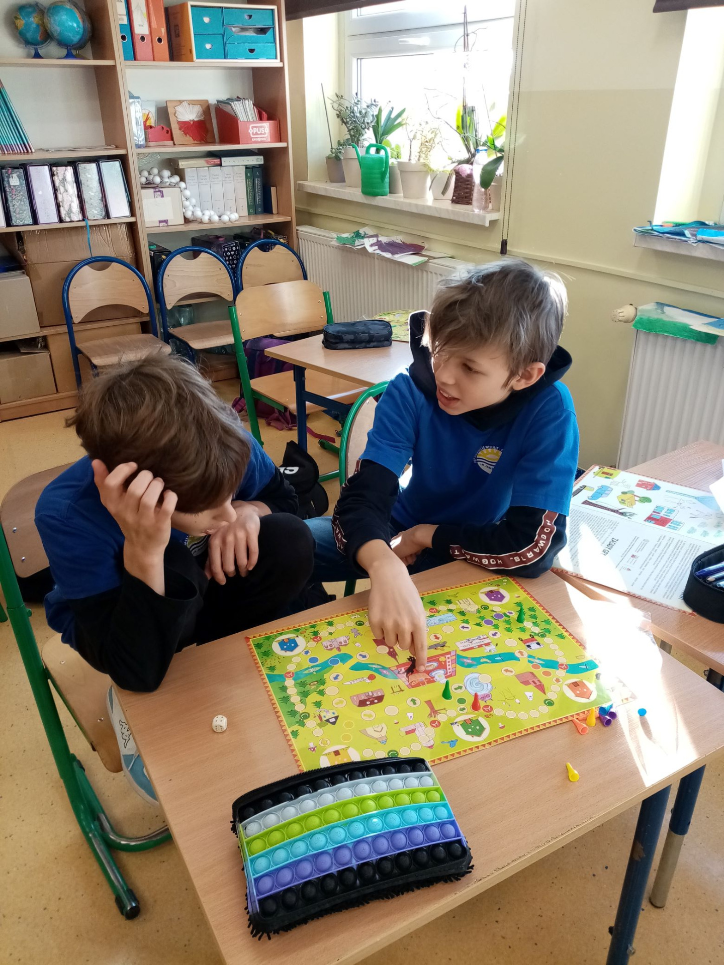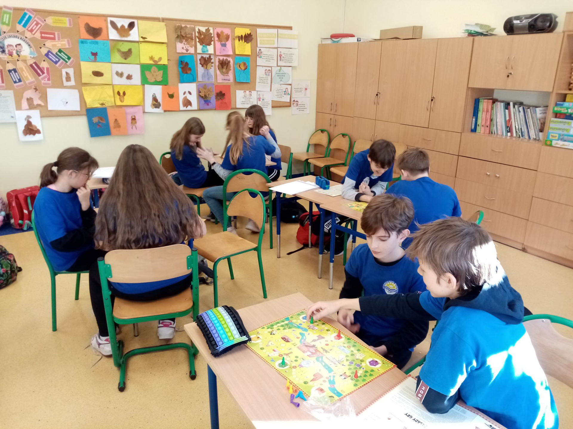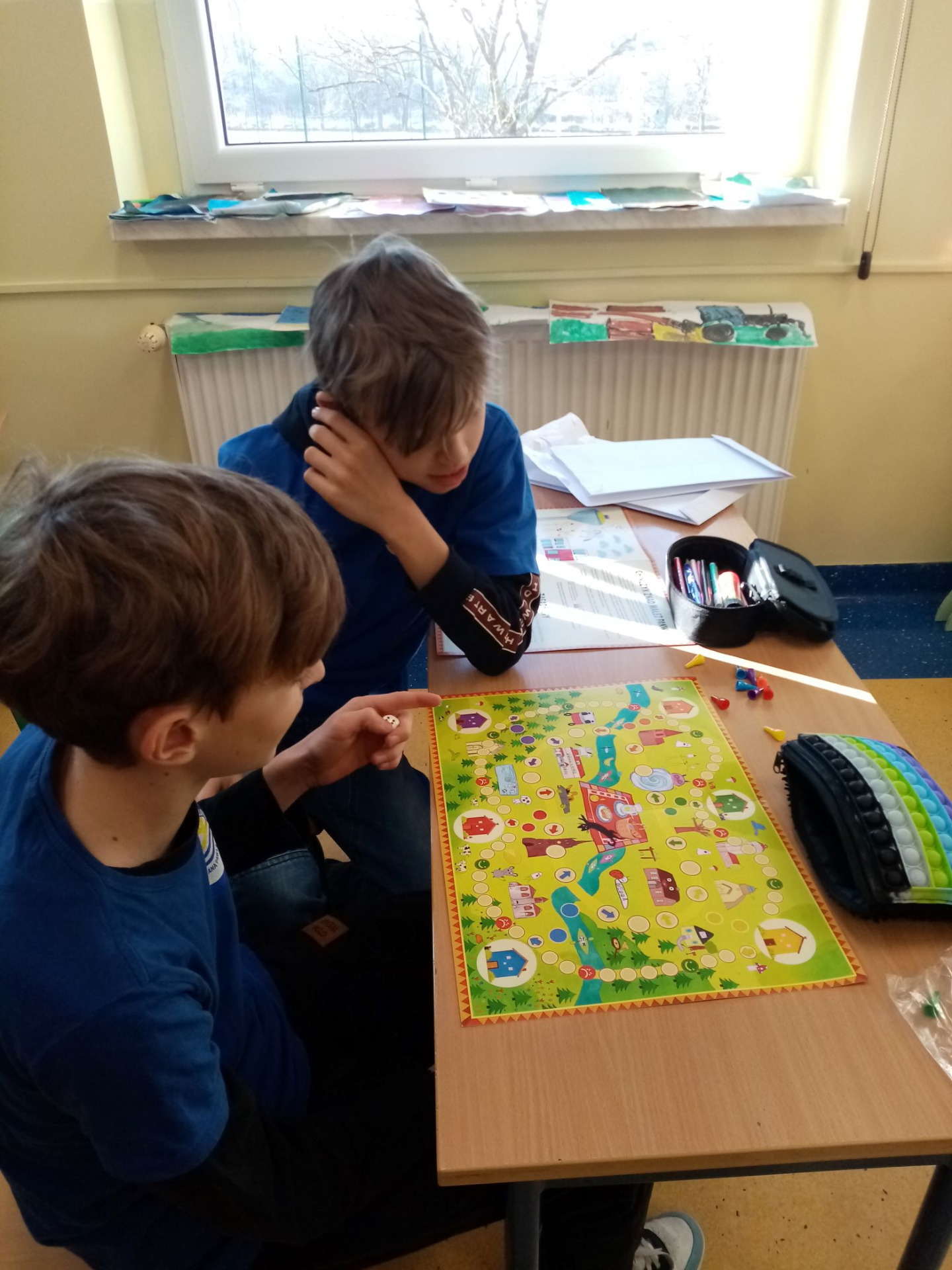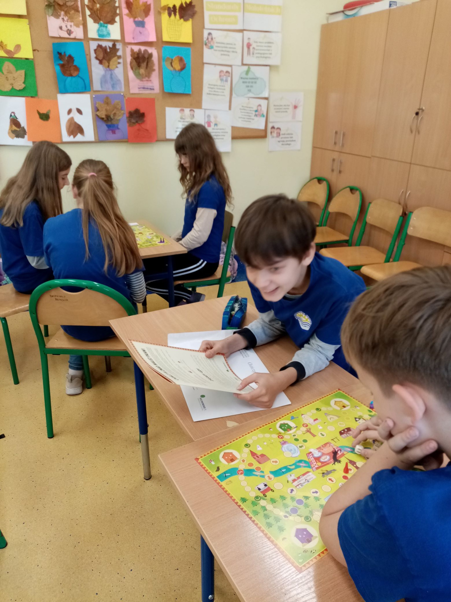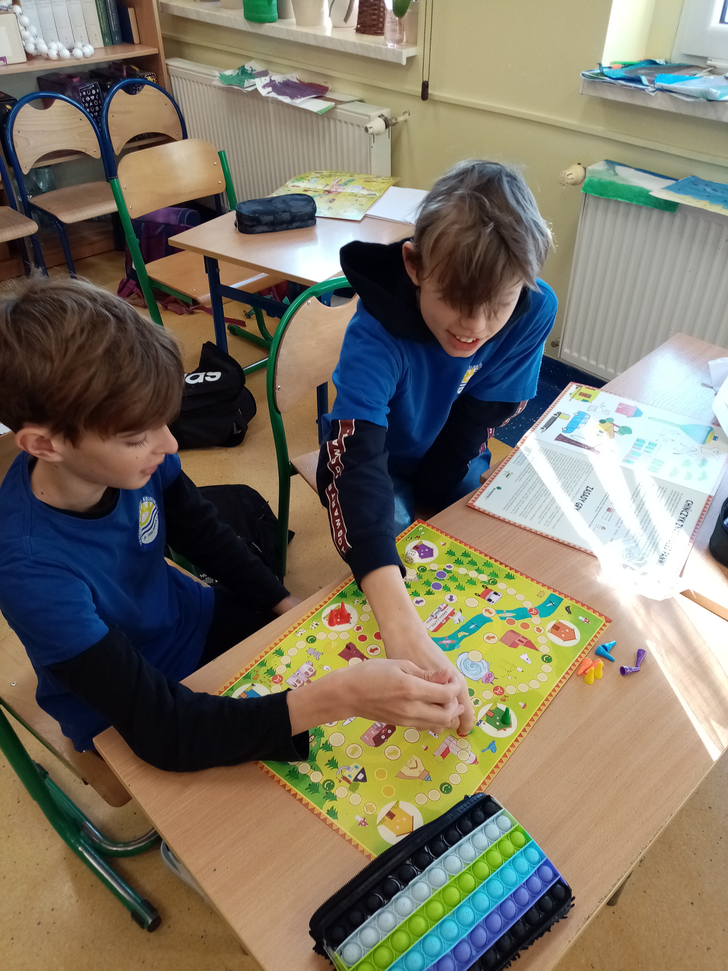 Uczniowie klasy 6, brali udział w warsztatach odbywających się w naszej szkole, w ramach inicjatywy „Planszówkowy zawrót głowy”. Ich zadaniem było zaprojektowanie elementów gry opartej na strategicznych punktach miejscowości: Staniszcze Wielkie oraz Fosowskie. Efektem ich pracy było powstanie gry planszowej „Chińczyk znad Małej Panwi”, którą otrzymali w nagrodę uczestnicy projektu. Uczniowie spróbowali swoich sił i od razu rozpoczęli grę. Okazuje się, że tak tradycyjna gra potrafiła ich bardzo zachwycić i zrelaksować. Najwięcej radości sprawiło jednak dzieciom odszukiwanie na planszy ich rysunków, byli bardzo dumni z tego, że przyczynili się do powstania tak wspaniałej gry.