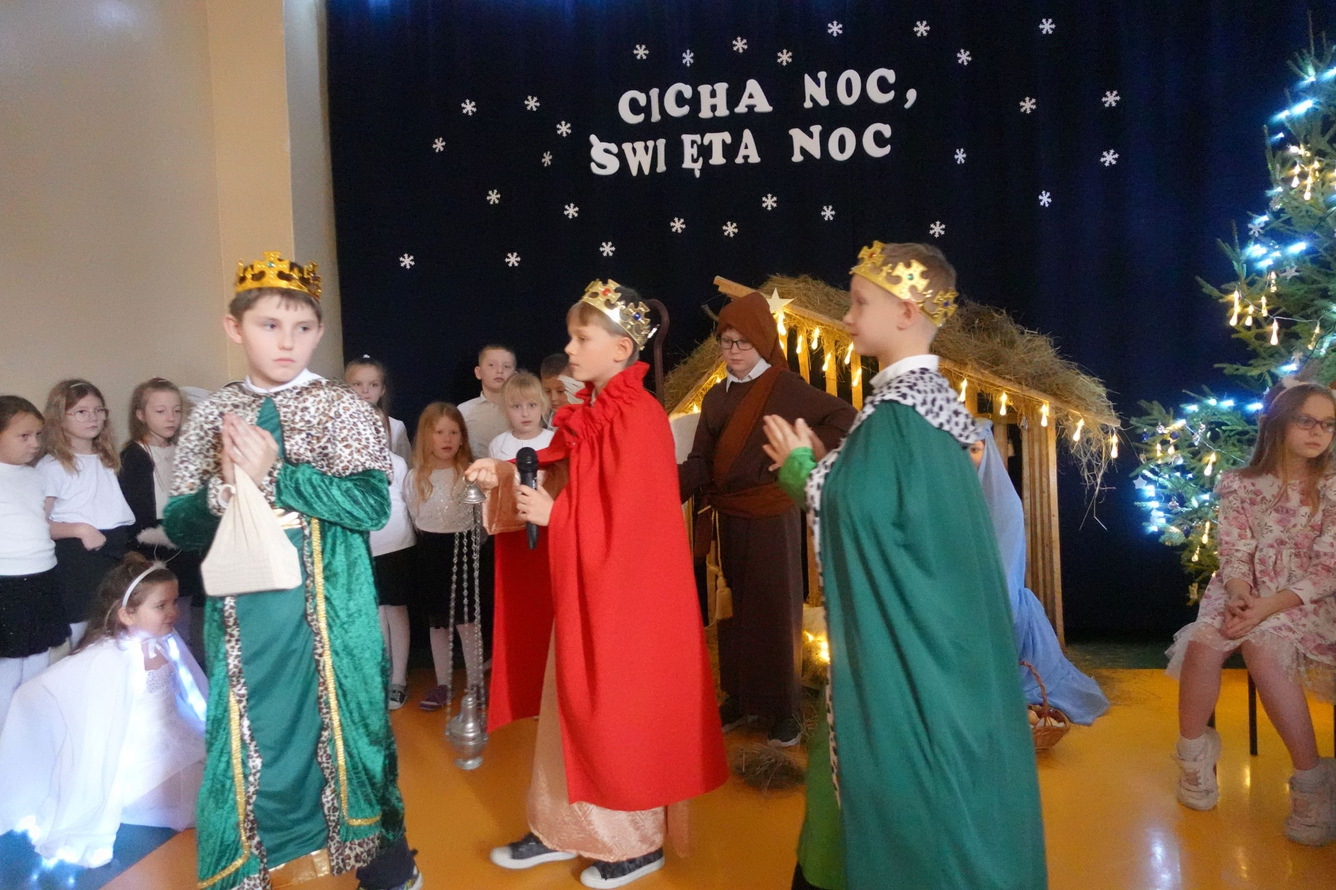 Jasełka szkolne zostały w tym roku przygotowane przez panią Annę Rerich, Mieczysławę Perwejnis oraz Iwonę Pietruszka.