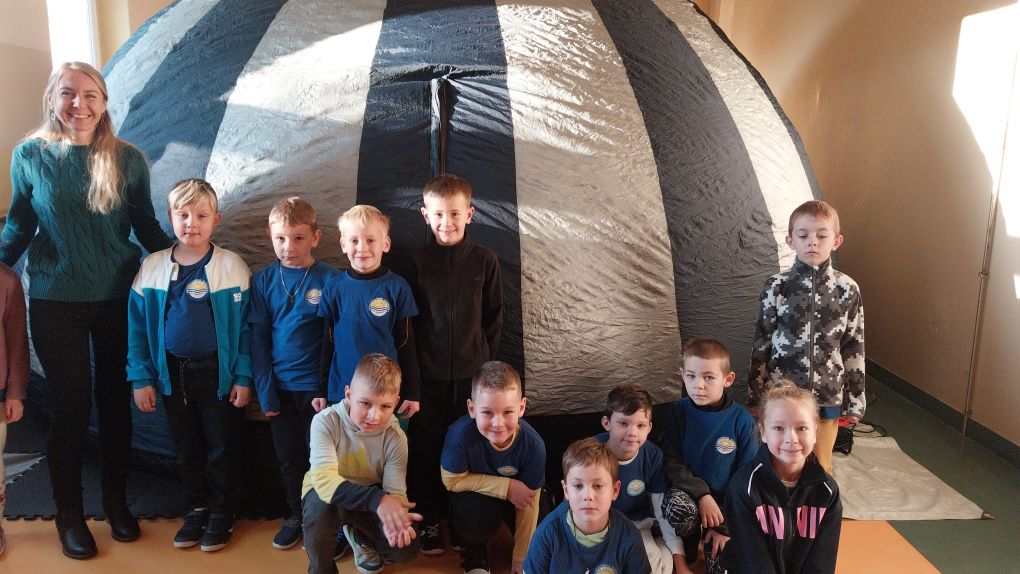W dniu 20 października nasi uczniowie oraz dzieci z oddziału przedszkolnego wzięli udział w projekcji kina sferycznego. To mobilne planetarium, które przyjechało do nas w celach edukacyjnych i przedstawiło kształcące filmy pod kątem 3600. Dzieci miały możliwość nie tylko oglądać, lecz także zostać uczestnikami niepowtarzalnych zdarzeń. Wypukły obraz, jasne kolory i dźwięk pozytywnie wpływają na układ nerwowy dziecka, jego stan fizyczny i emocjonalny.