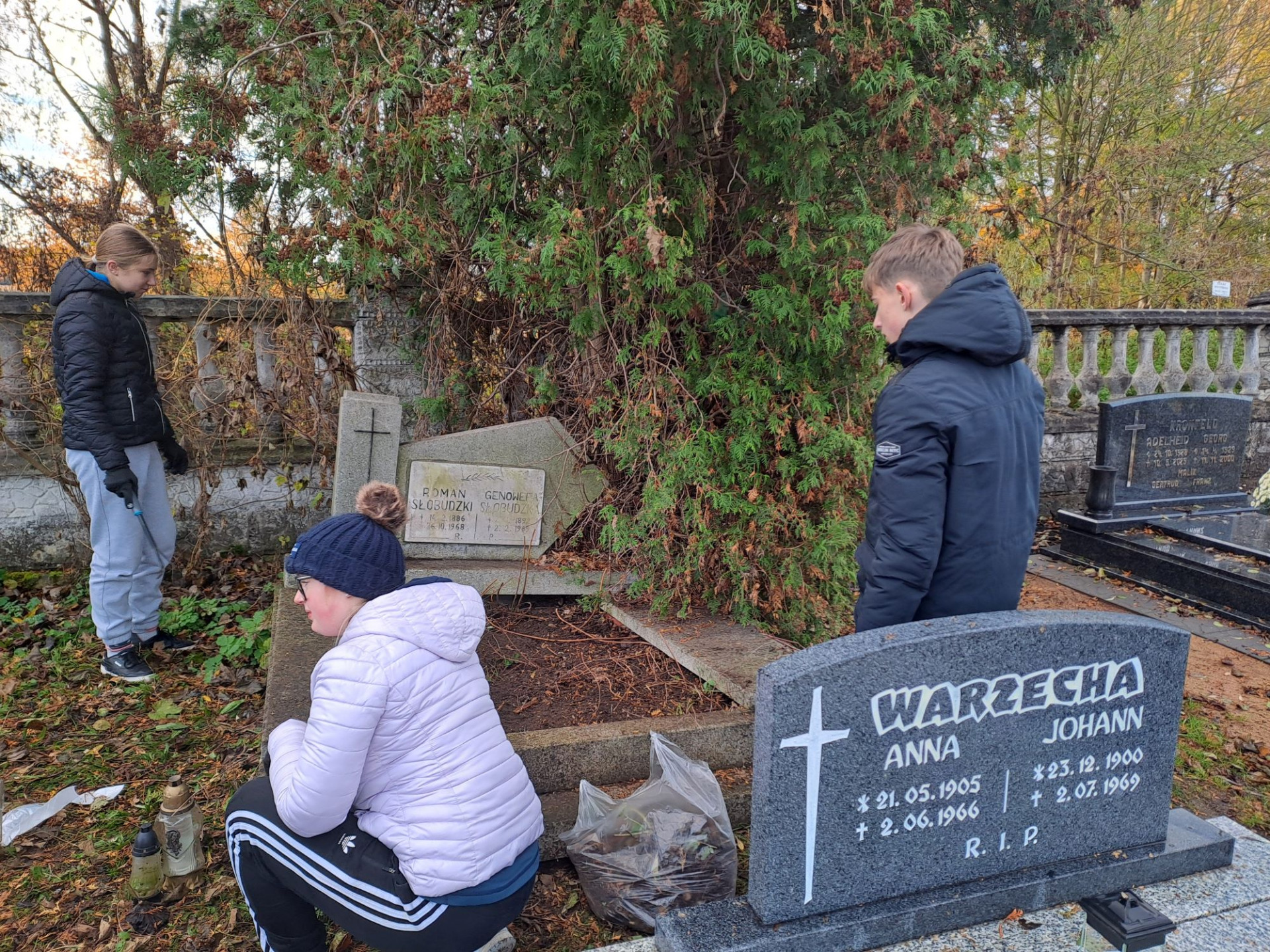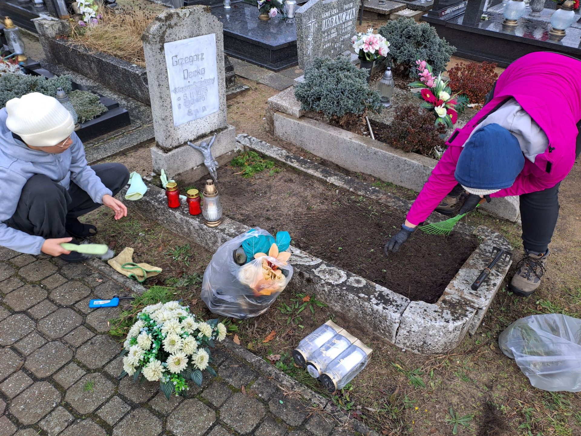 Sprzątanie grobów - akcja Szkolnego Wolontariatu