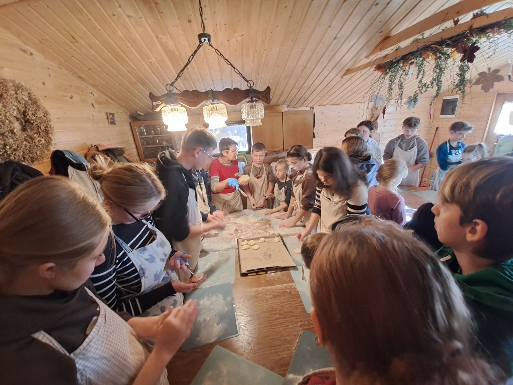 Dzięki uprzejmości pani Iwony Pietruszki nasi uczniowie klasy II oraz wolontariusze brali udział w wypiekach chleba oraz niezwykłym projekcie łączącym pokolenia.