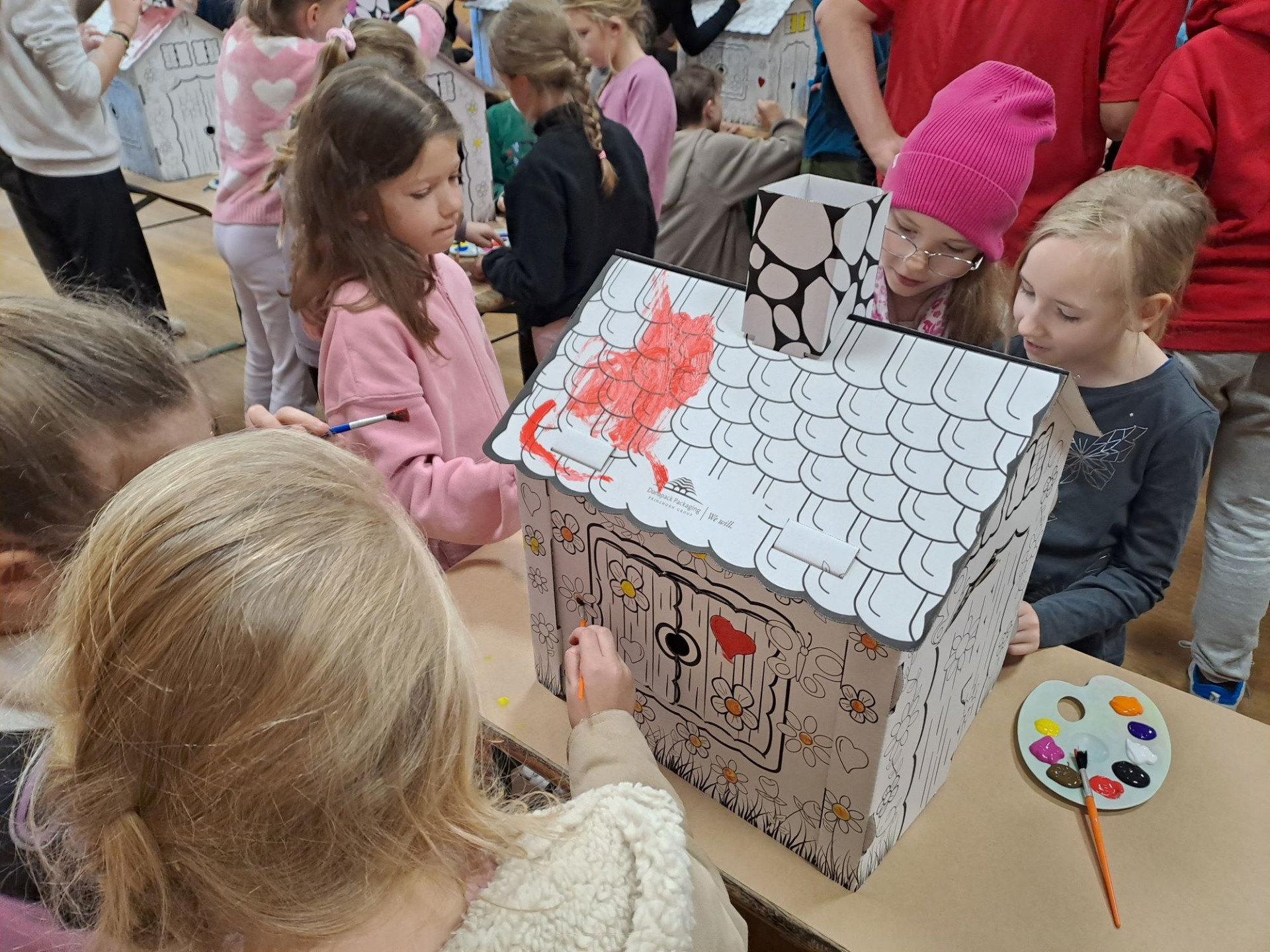 Twórcza zabawa zamieniła zwykłe kartony w kolorową wioskę – Wioskę Domów Pokoleń. Każdy domek był inny, ale razem tworzyły jedną całość – tak, jak my tego dnia. Malarze, konstruktorzy, budowniczowie – wszyscy pracowali ramię w ramię. Bo najważniejsze było być razem.
