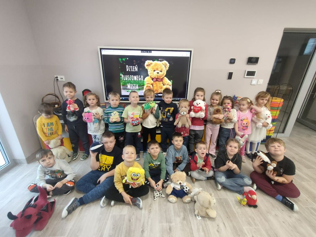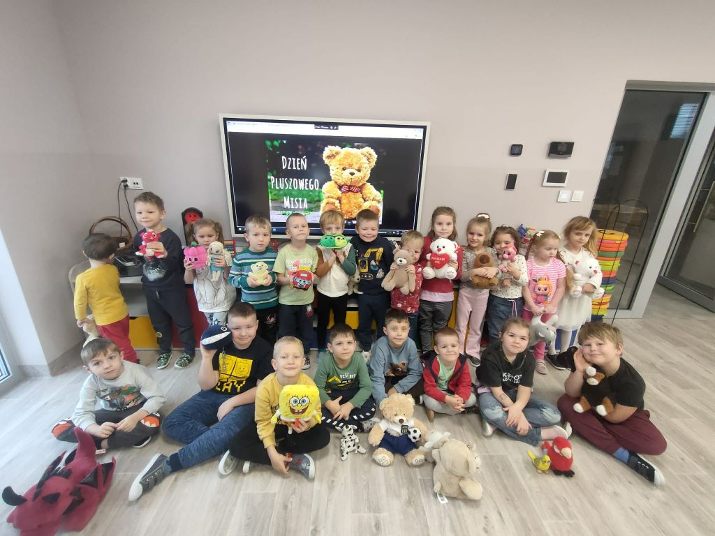 Z okazji Dnia Pluszowego Misia, dzieci przyniosły do przedszkola swoje ukochane pluszowe misie. Na początku wspólnie odśpiewaliśmy „Sto lat”, a potem rozpoczęły się zabawy i zajęcia muzyczne. W sali panował śmiech, radość i wesoła atmosfera. To był super dzień pełen uśmiechów i dobrej zabawy!