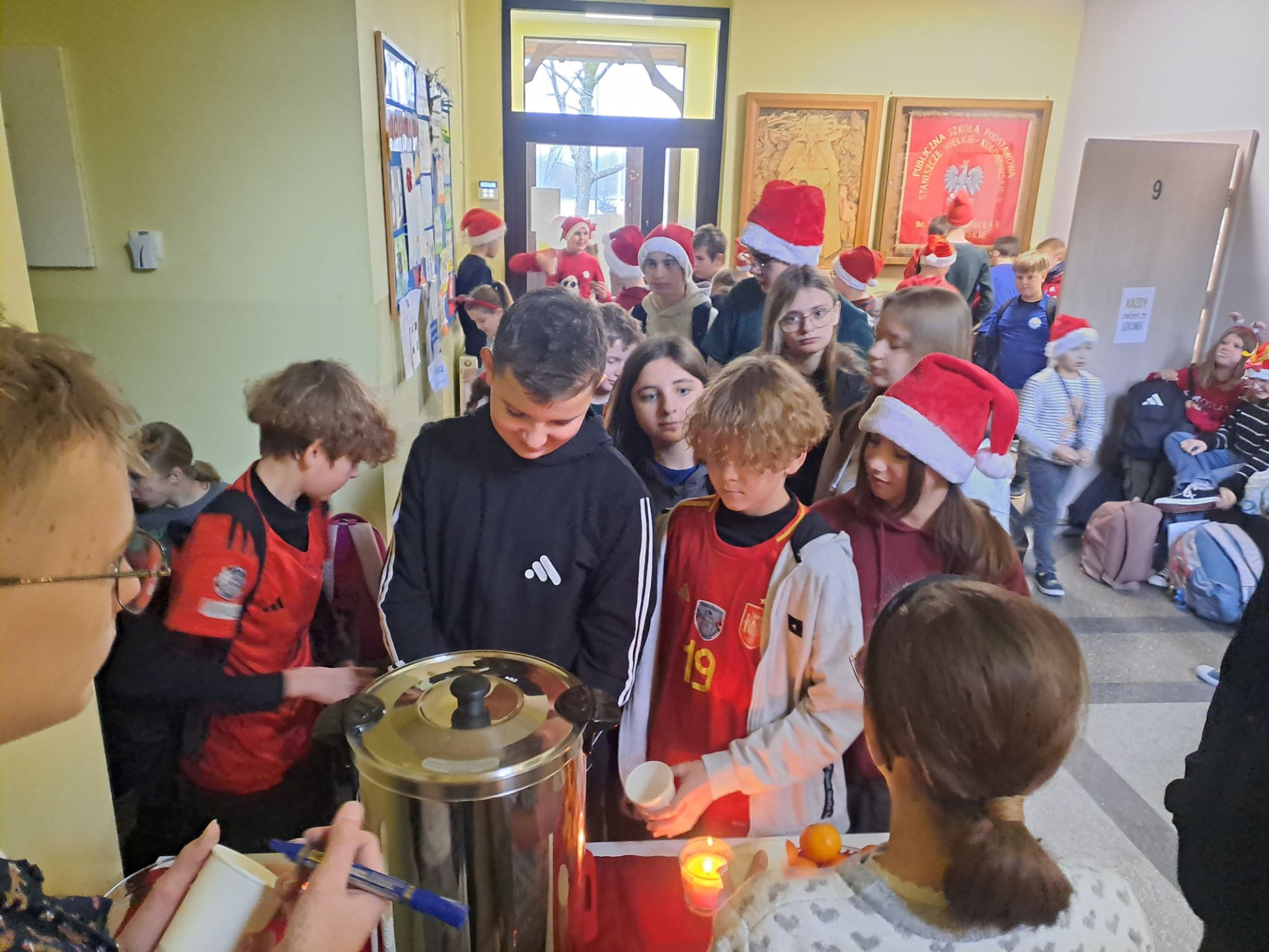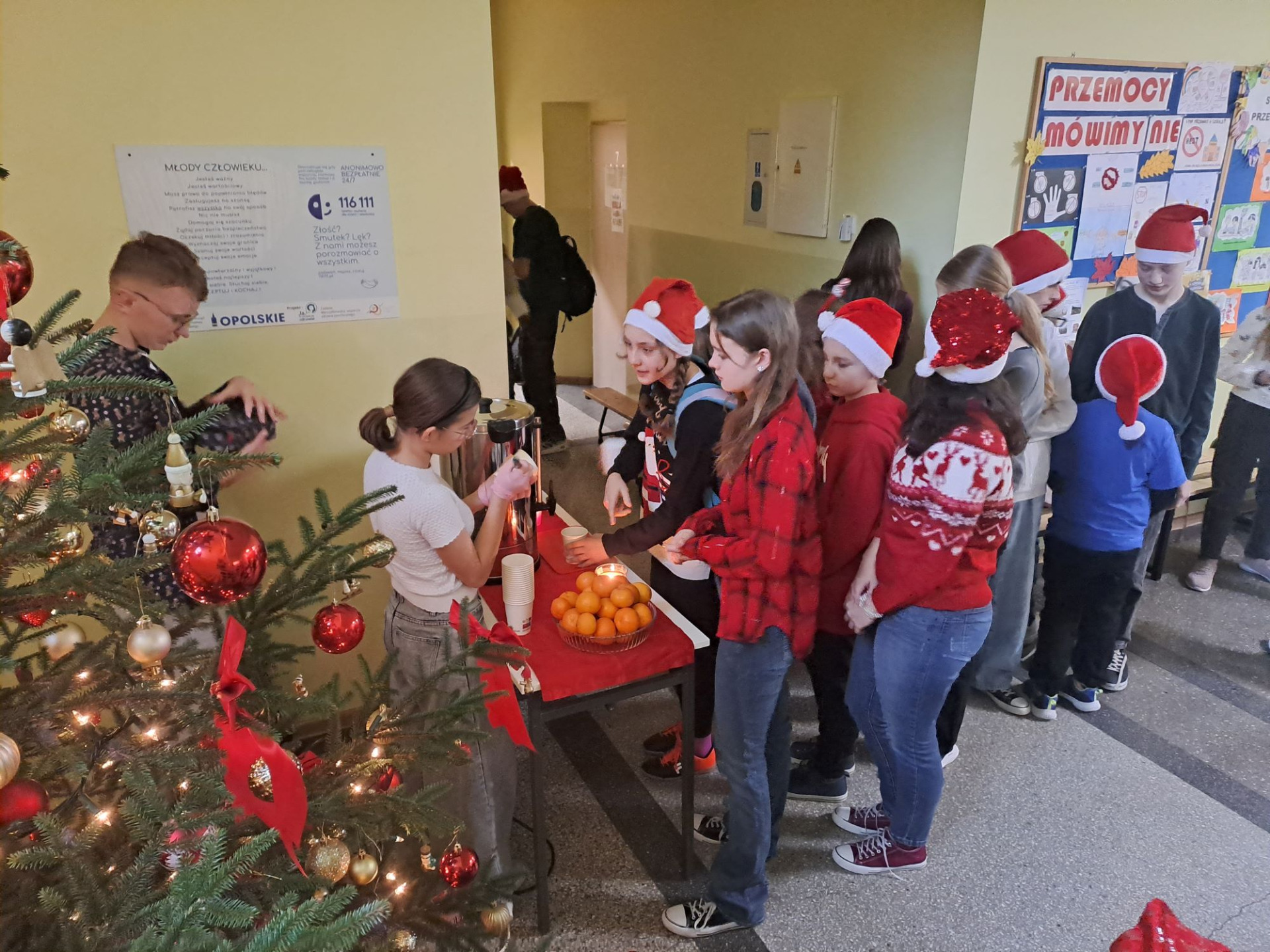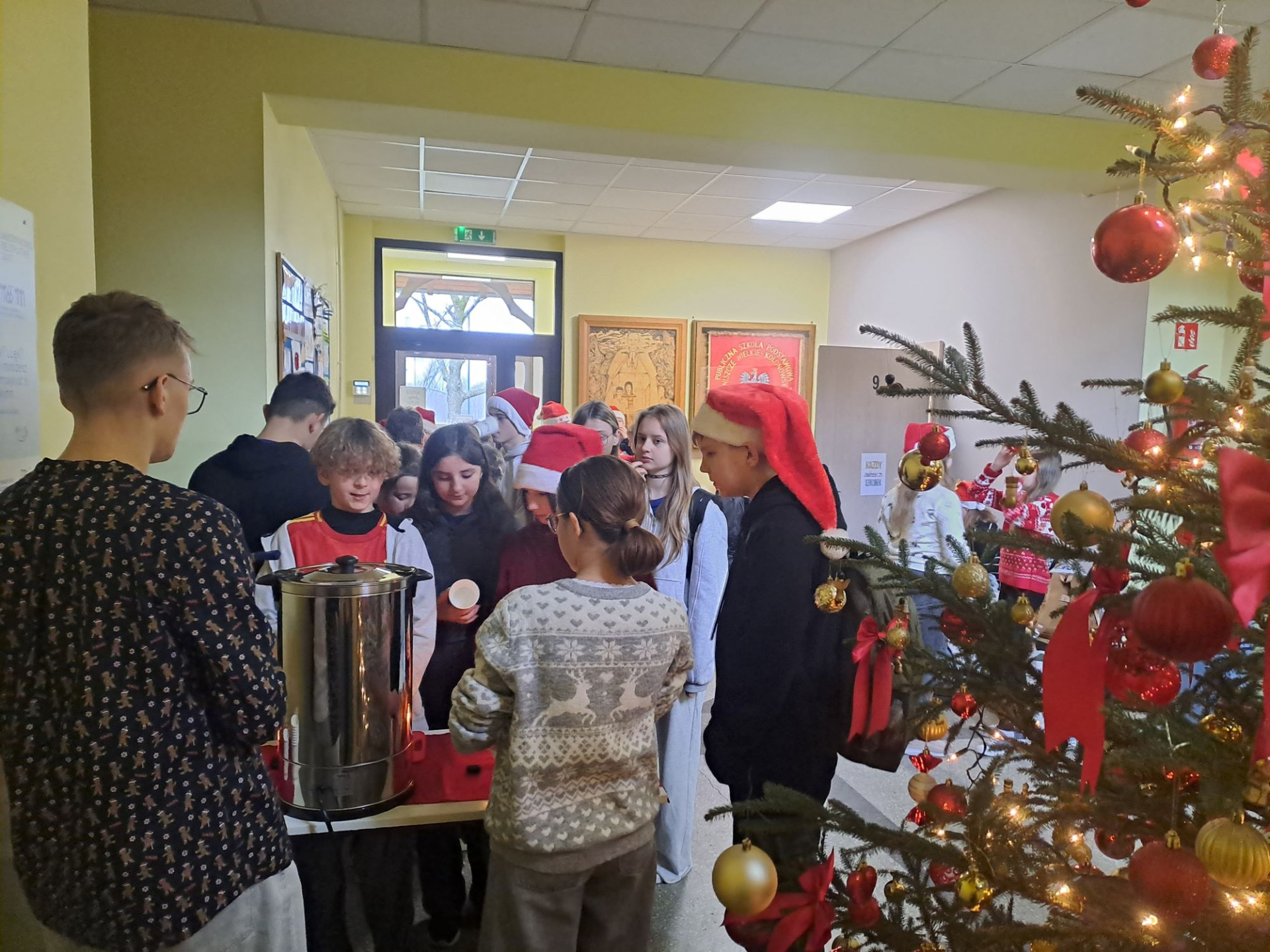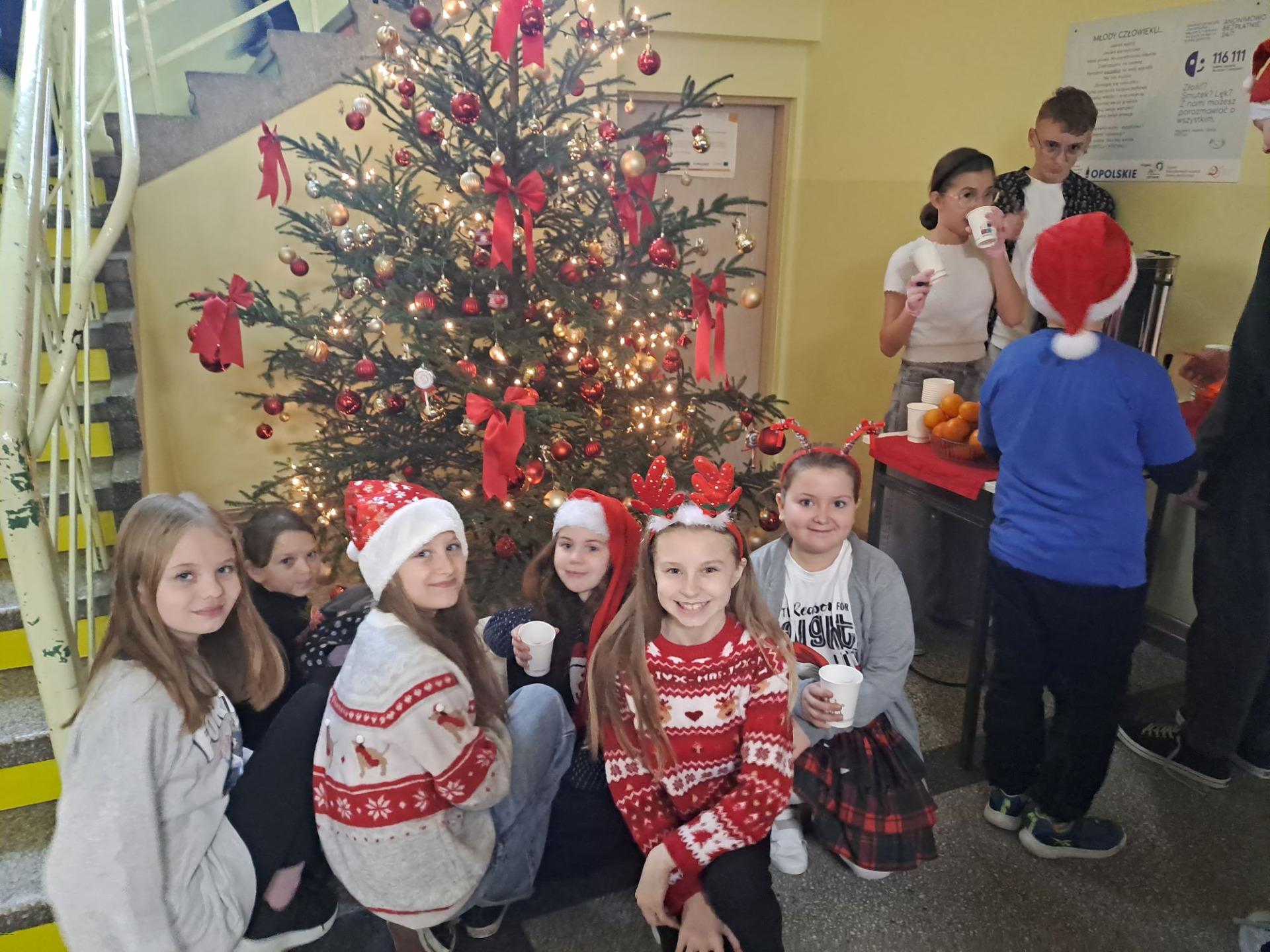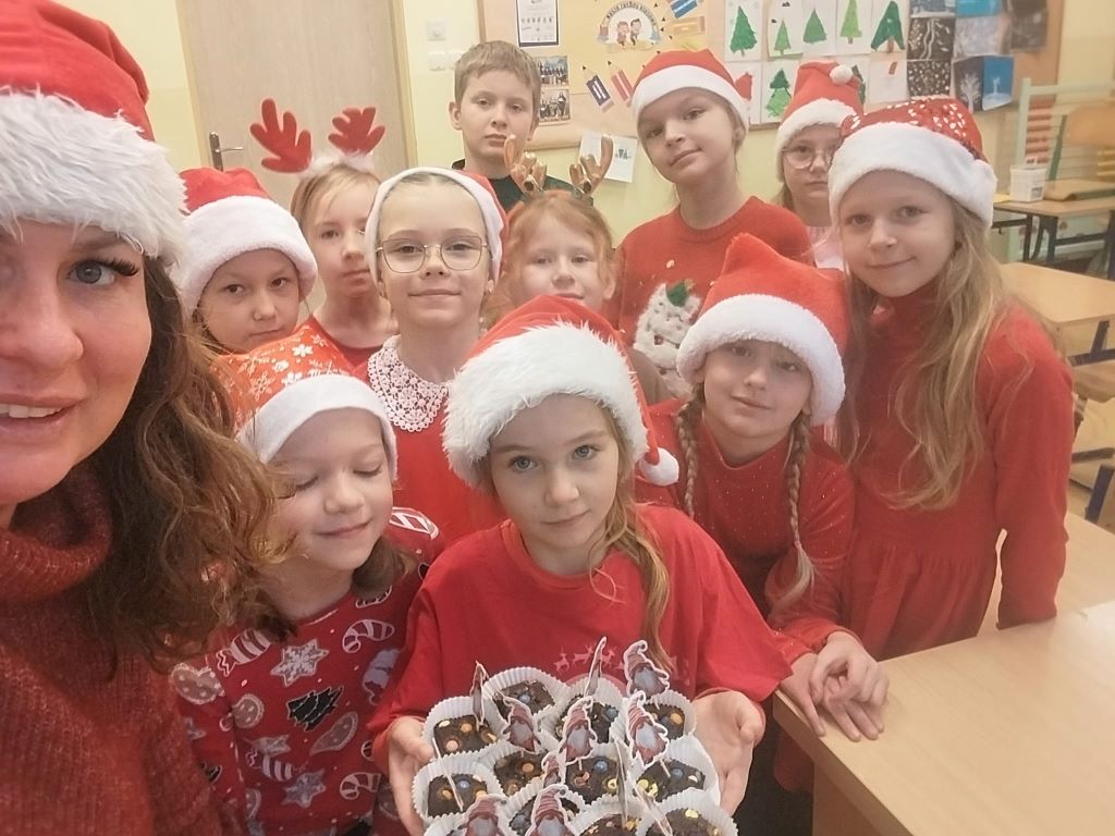 Mikołajki to święto uwielbiane przez dzieci, które wspaniale wprowadza nas w klimat świąt i oswaja z grudniowym mrokiem za oknem. W piątek 5.12.2025r. wszyscy uczniowie ubrali czerwone lub świąteczne sweterki, czapki Mikołaja, opaski i inne elementy z motywami świątecznymi, a Samorząd Uczniowski na przerwach częstował zimową herbatką i mandarynkami. Na twarzach dzieci malowała się wielka radość i uśmiech. Był to naprawdę radosny dzień dla nas wszystkich.