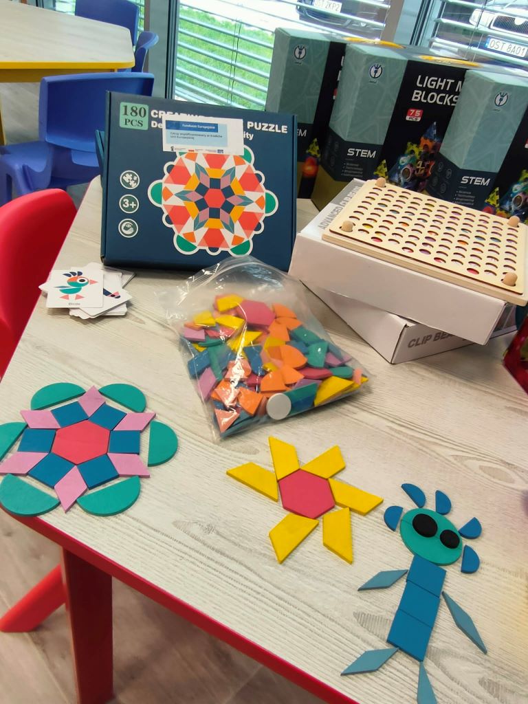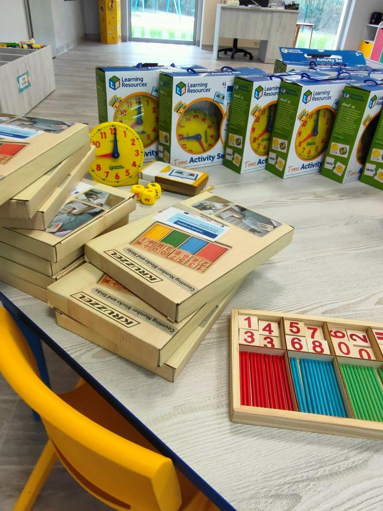 W ramach projektu „Wsparcie edukacji przedszkolnej w gminie Kolonowskie” otrzymaliśmy piękne i wartościowe pomoce dydaktyczne, które znacząco uatrakcyjnią prowadzone przez nas zajęcia. Wśród nowych materiałów znalazły się między innymi wagi szalkowe, klocki magnetyczne, mozaiki, zegary edukacyjne oraz liczmany. Dzięki nim dzieci będą mogły w sposób praktyczny i ciekawy rozwijać umiejętności matematyczne, ćwiczyć logiczne myślenie oraz odkrywać zależności między wielkościami. Dodatkowo przestrzeń zajęć wzbogacił interaktywny dywan, który umożliwia prowadzenie angażujących aktywności ruchowych połączonych z edukacją. Wszystkie otrzymane pomoce sprawiają, że zajęcia stają się bardziej dynamiczne, kreatywne oraz dostosowane do indywidualnych potrzeb i możliwości uczniów.