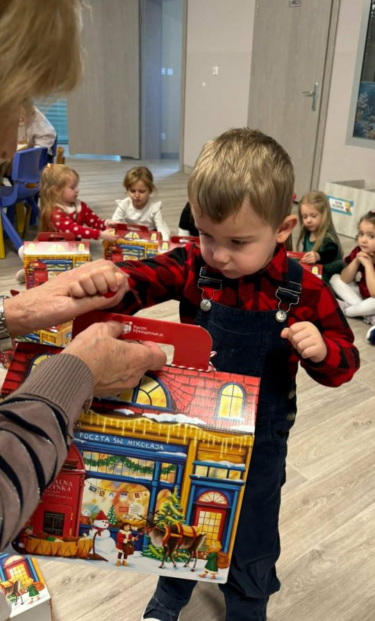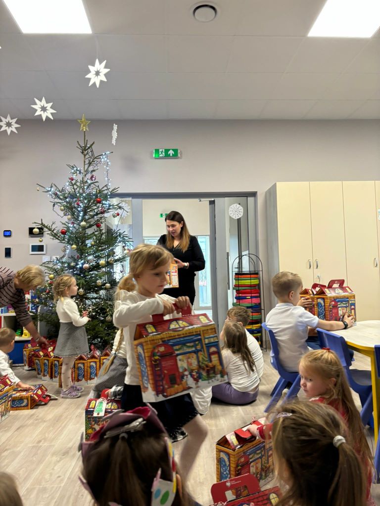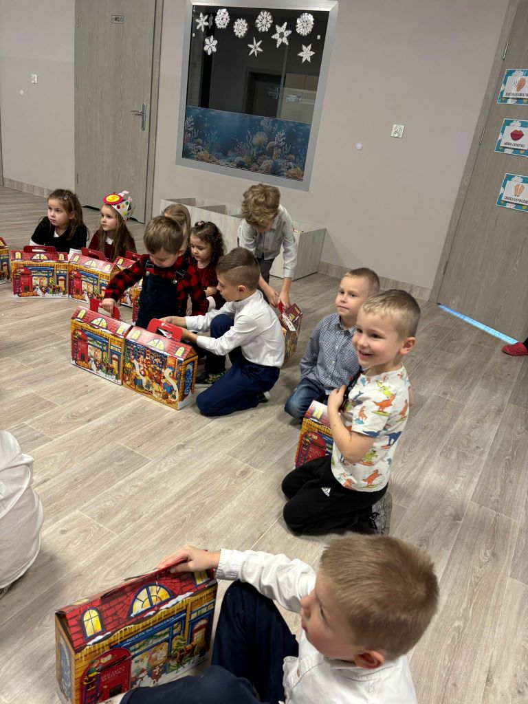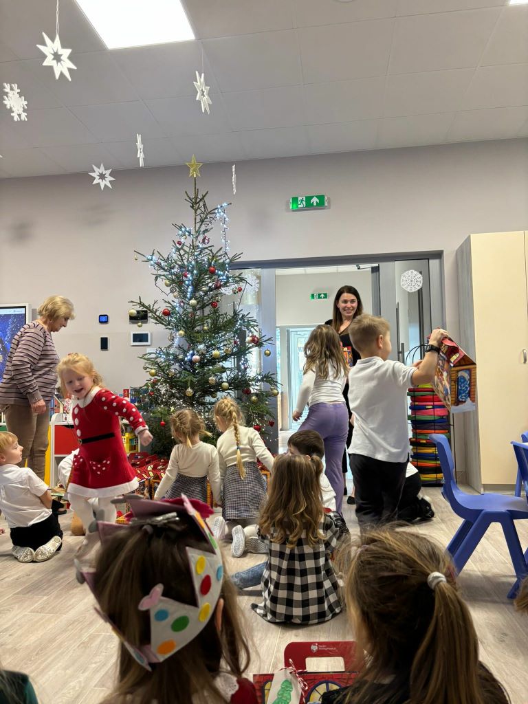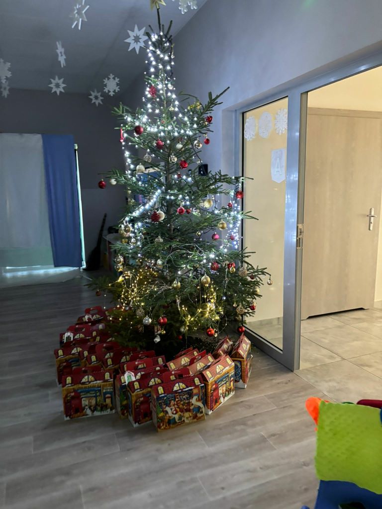 Wigilia w naszym przedszkolu była pełna ciepła, radości i świątecznej magii. Rozpoczęliśmy modlitwą i czytaniem Pisma Świętego o narodzeniu Jezusa, a potem dzieci dzieliły się opłatkiem, składając sobie serdeczne życzenia. Sala wypełniła się śpiewem kolęd i oczekiwaniem na „Dzieciątko” – moment, kiedy można było zobaczyć prezenty pod choinką.