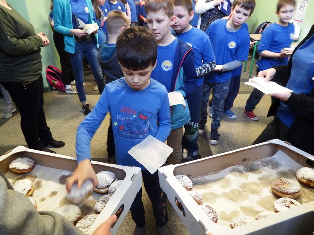 Zgodnie z tradycją szkoły pyszne pączki zafundował Sklepik Szkolny (opiekun - pani Sylwia Kurek).