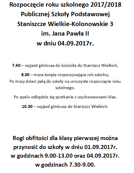 PUBLICZNA SZKOŁA PODSTAWOWA STANISZCZE WIELKIE– KOLONOWSKIE 3 IM. JANA PAWŁA II