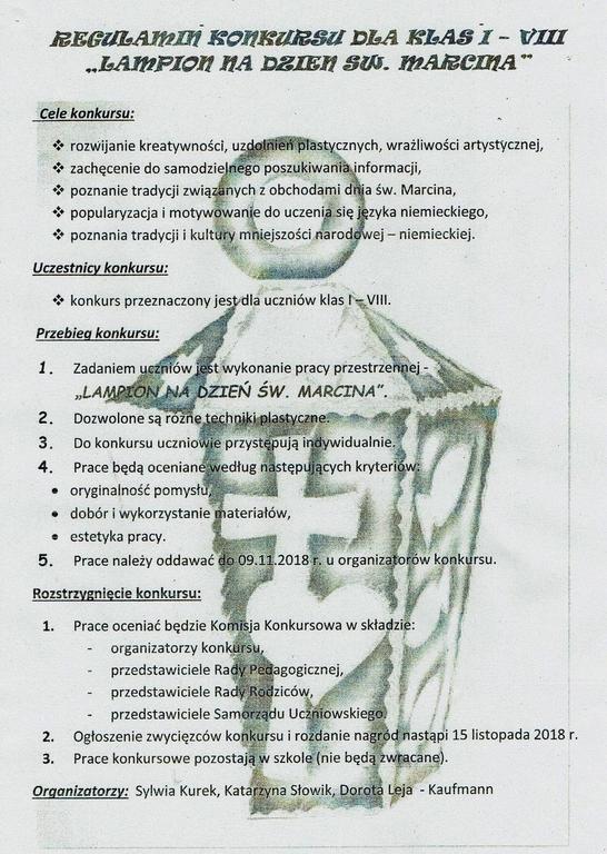 Konkurs - Lampion na Św. Marcina - szczególy w załączniku.