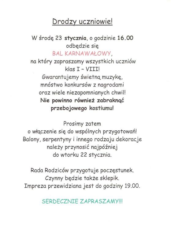 Strona główna Aktualności Ogłoszenie - Bal Karnawałowy
