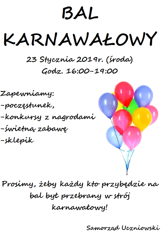 • Ogłoszenie - Bal Karnawałowy
