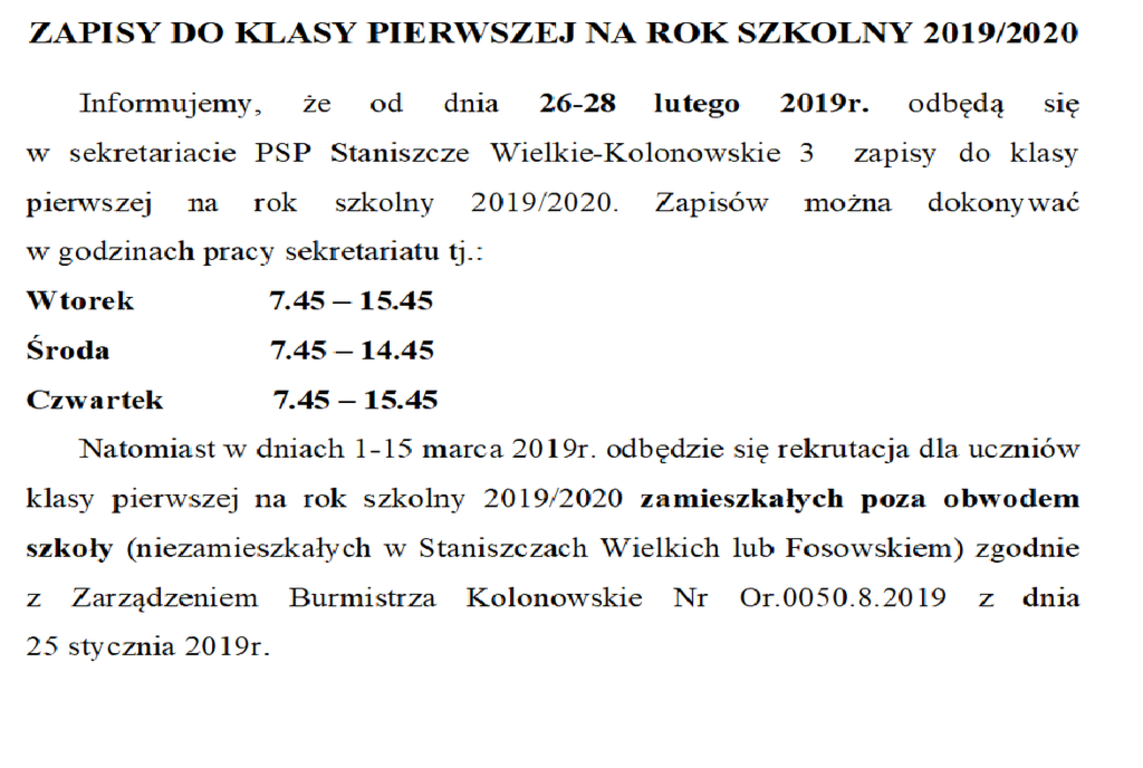 Zapisy do klasy I na rok szkolny 2019//2020 - załącznik.