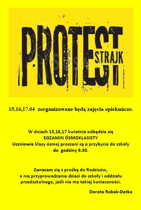 Zajęcia opiekuńcze w dniach 15, 16, 17 kwietnia 2019 r.