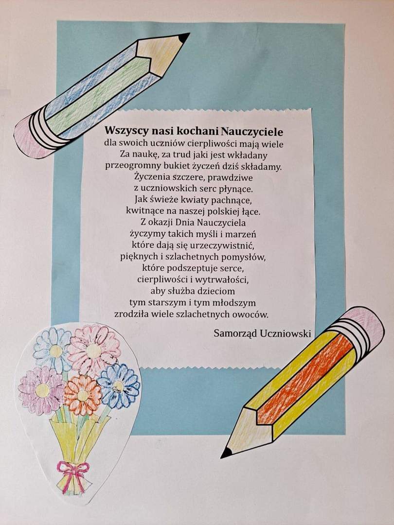 Z okazji DEN Samorząd Uczniowski reprezentując wszystkich uczniów przygotował dla nauczycieli oraz wszystkich pracowników szkoły slodką niespodziankę i życzenia.