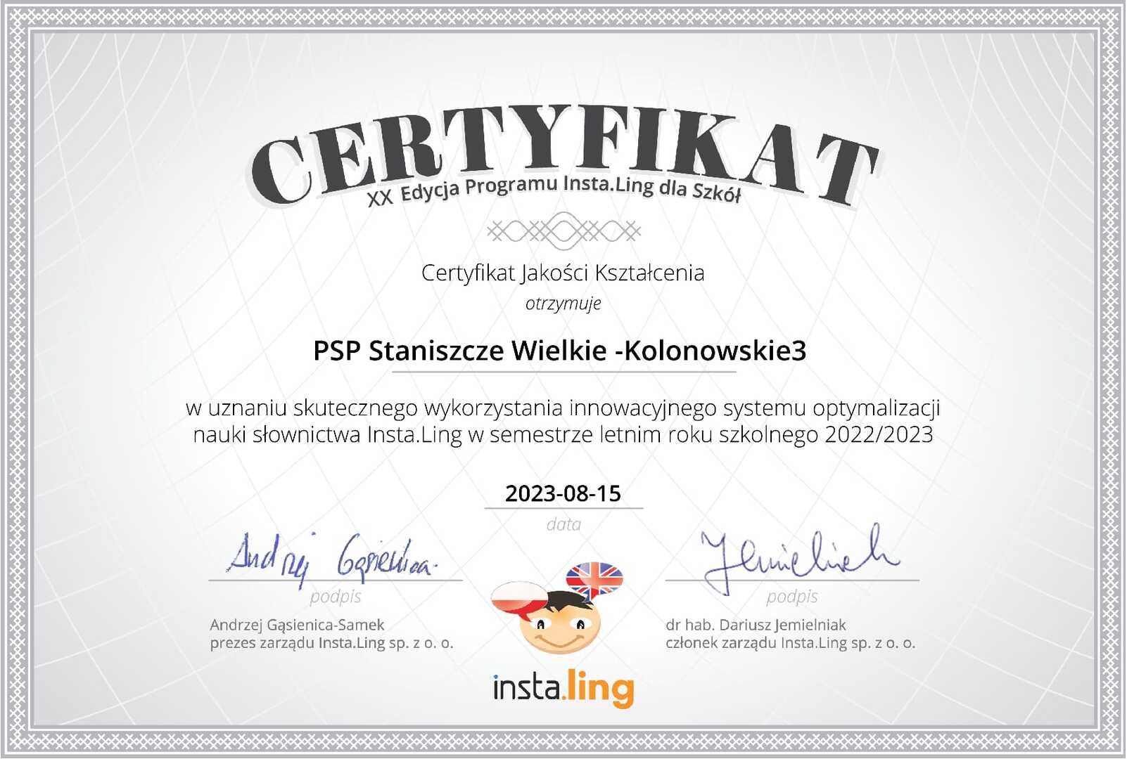 • Certyfikat