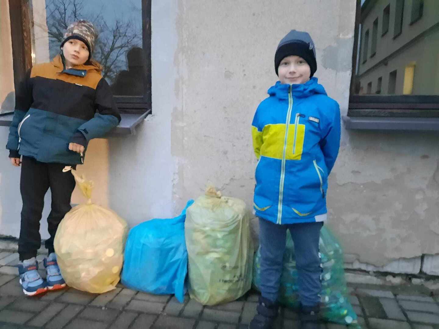 Podsumowanie akcji charytatywnej - zbiórka groszówek i nakrętek.