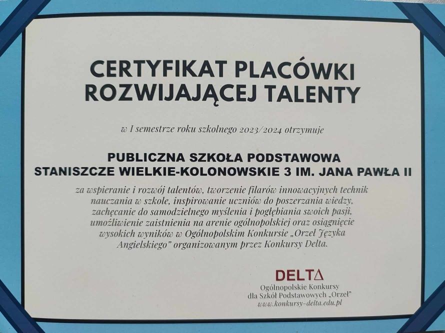 PUBLICZNA SZKOŁA PODSTAWOWA STANISZCZE WIELKIE– KOLONOWSKIE 3 IM. JANA PAWŁA II