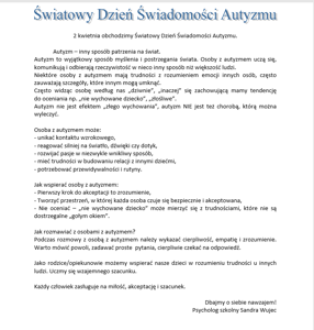 Światowy Dzień Świadomości Autyzmu - 2 kwietnia...