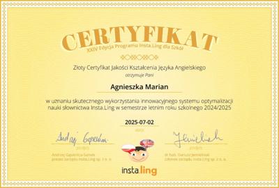 Złoty Certyfikat Jakości Kształcenia Języka...