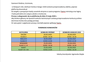 Szanowni Rodzice, Drodzy Nauczycie i Pracownicy...